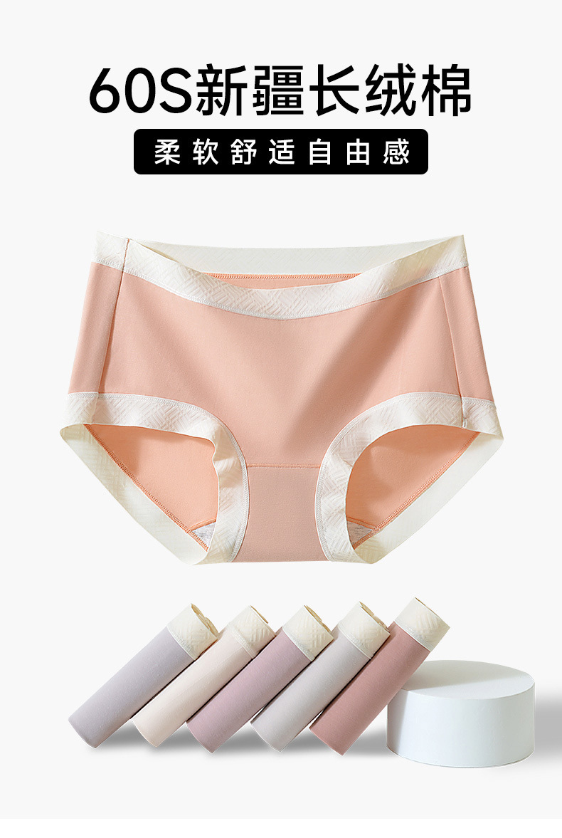 60支长绒棉无痕抗菌内裤女纯棉中腰薄款透气女士三角裤