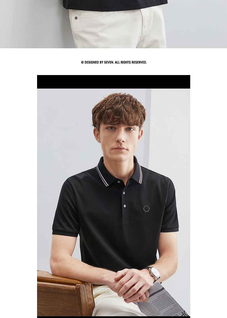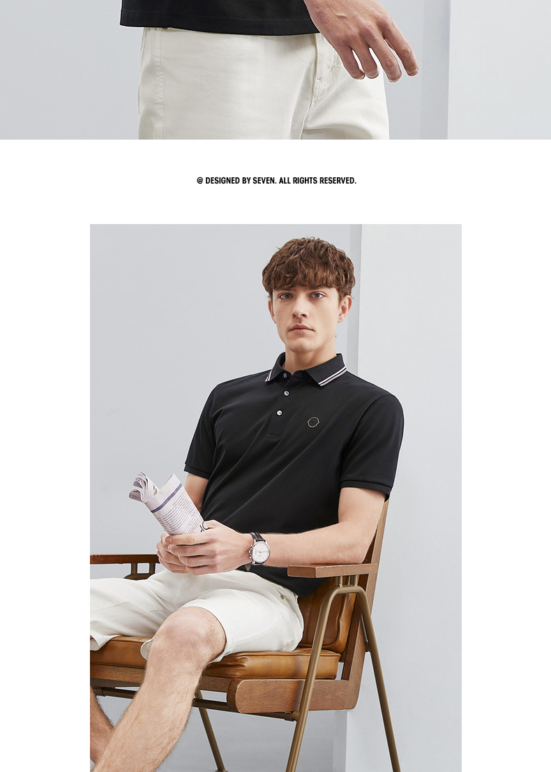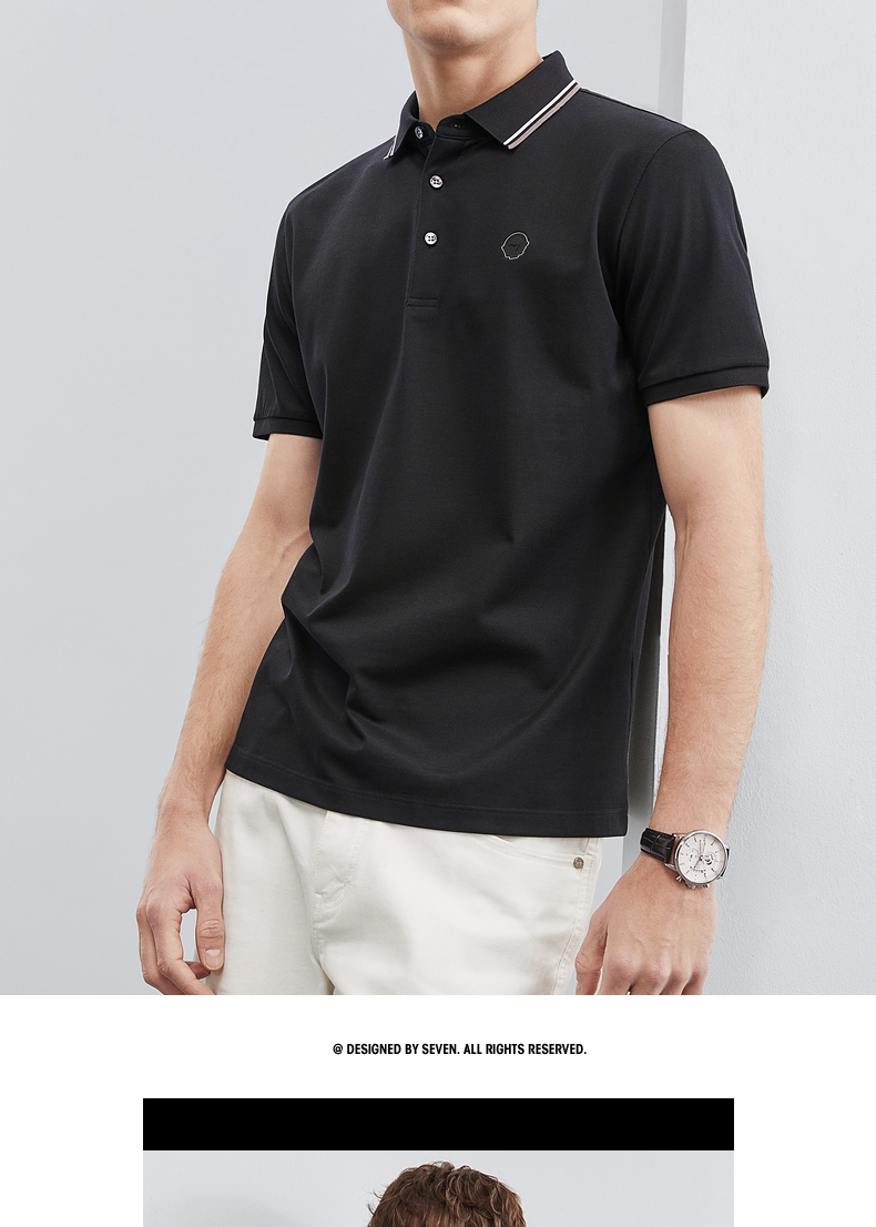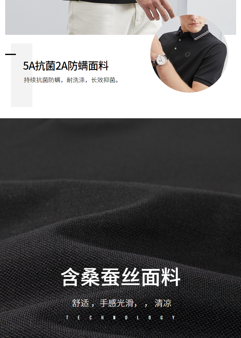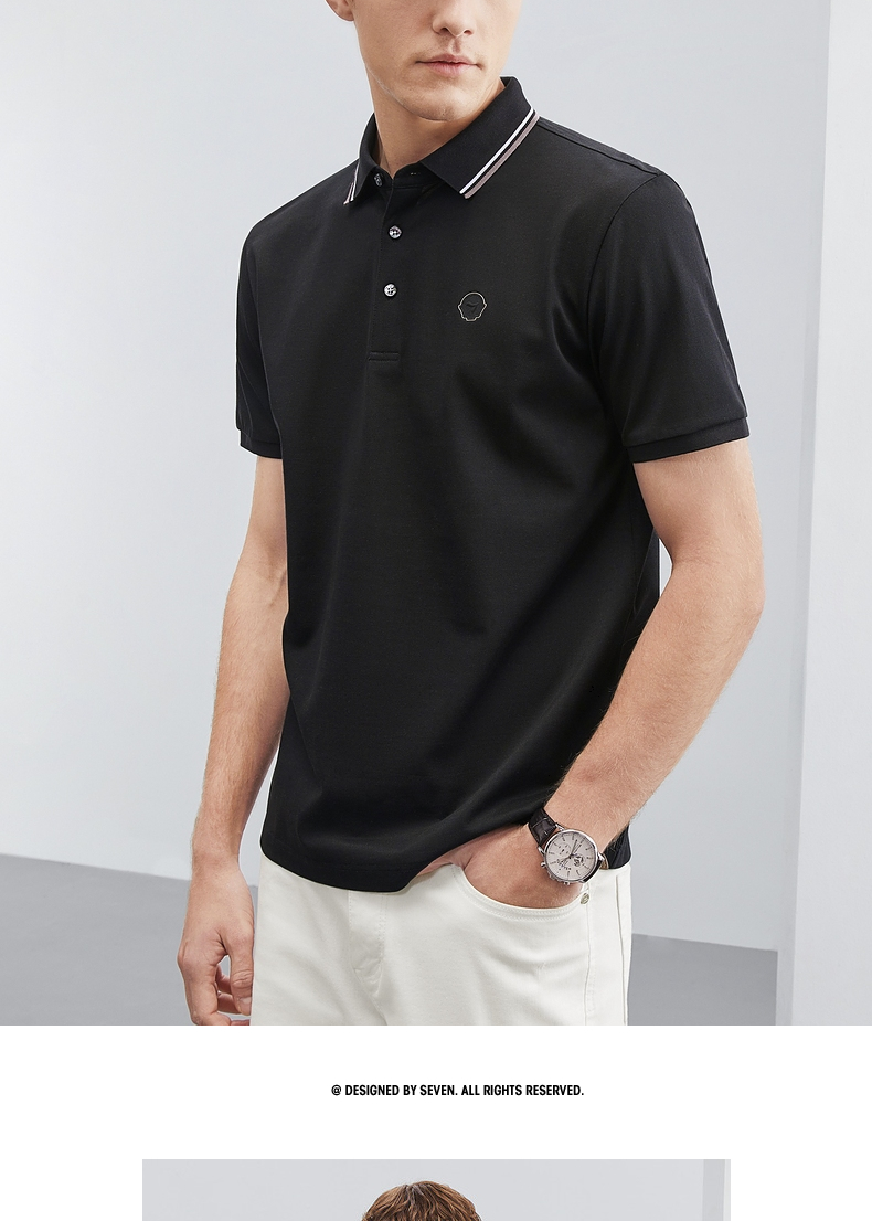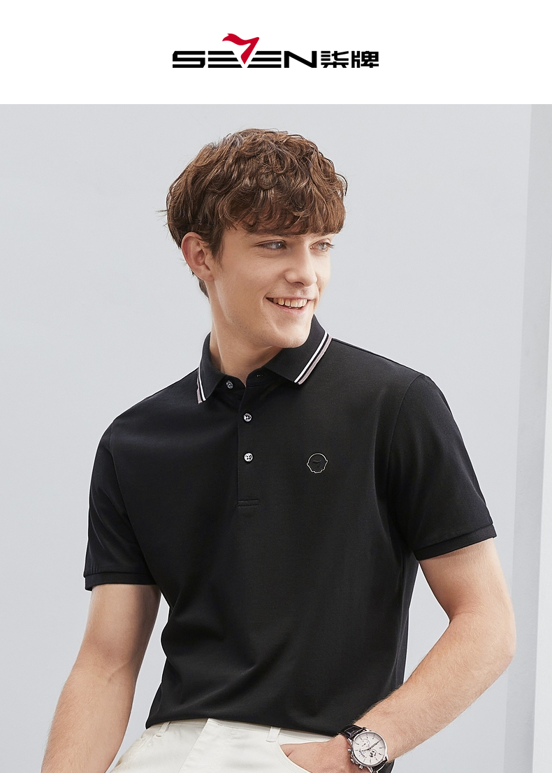 【5A抗菌/2A防螨】柒牌polo衫男短袖夏季薄款含桑蚕丝黑色翻领T恤 124T70570