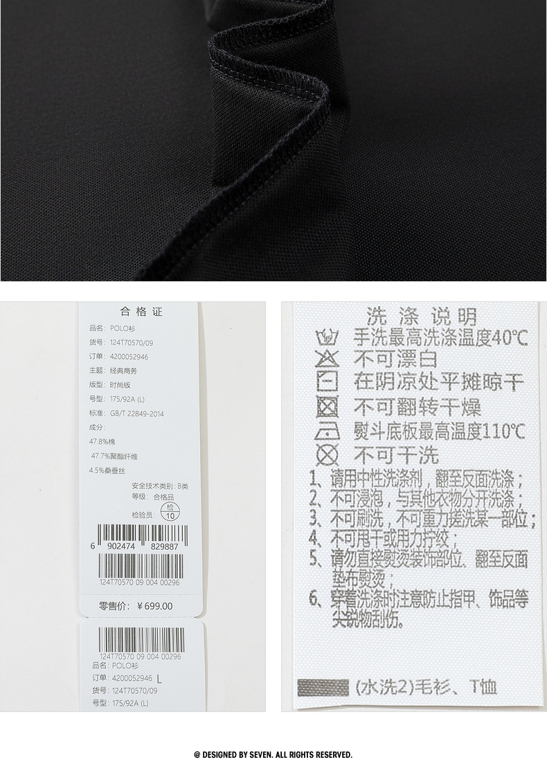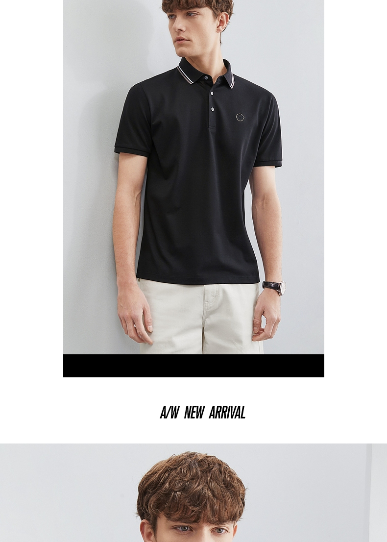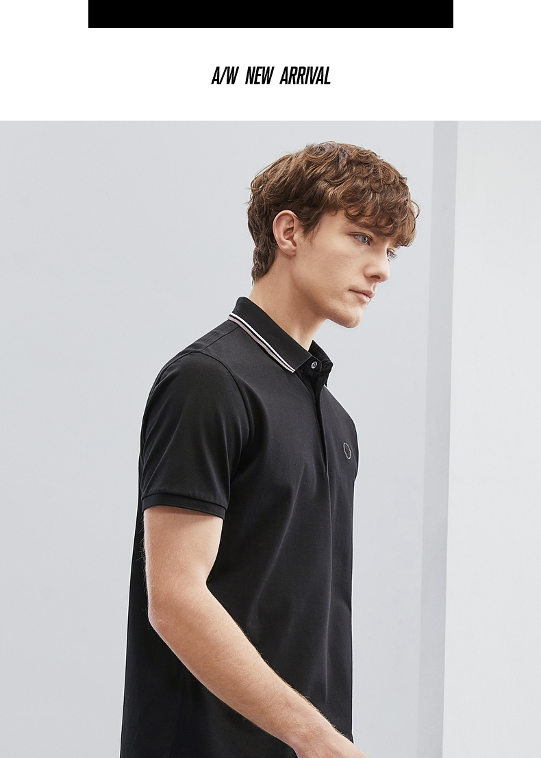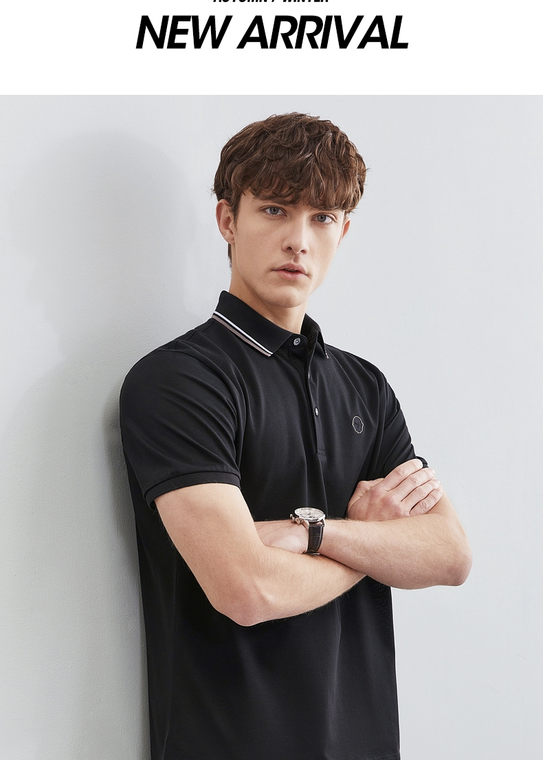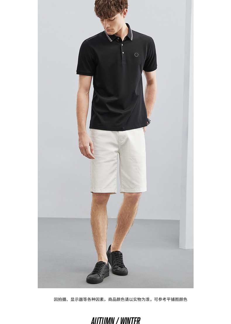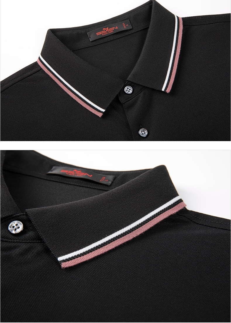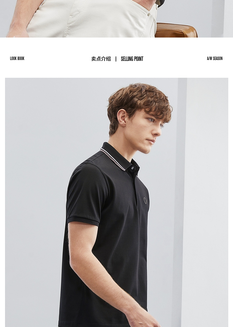【5A抗菌/2A防螨】柒牌polo衫男短袖夏季薄款含桑蚕丝黑色翻领T恤 124T70570