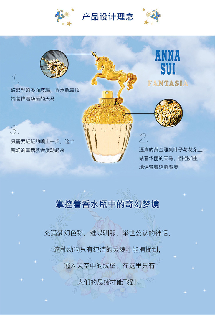 2017专柜新品 童话独角兽淡香水限量发售🦄只有Anna Sui能一再超越自己的夢幻程度!此次藉由獨角獸的形象,傳達每個女人心中最純真的兒時夢想,包含追尋夢想及對未來的憧憬。新香設計營造出遊樂園的歡愉感,粉藍外盒中躺著的是帶有金色獨角獸裝飾的香水,香調則融合花果與木質香,讓紅柏與粉紅胡椒相互交融,再搭配覆盆莓、紫羅蘭等甜美調,帶來浪漫觀感