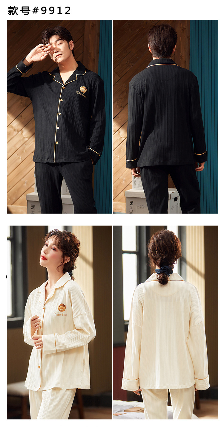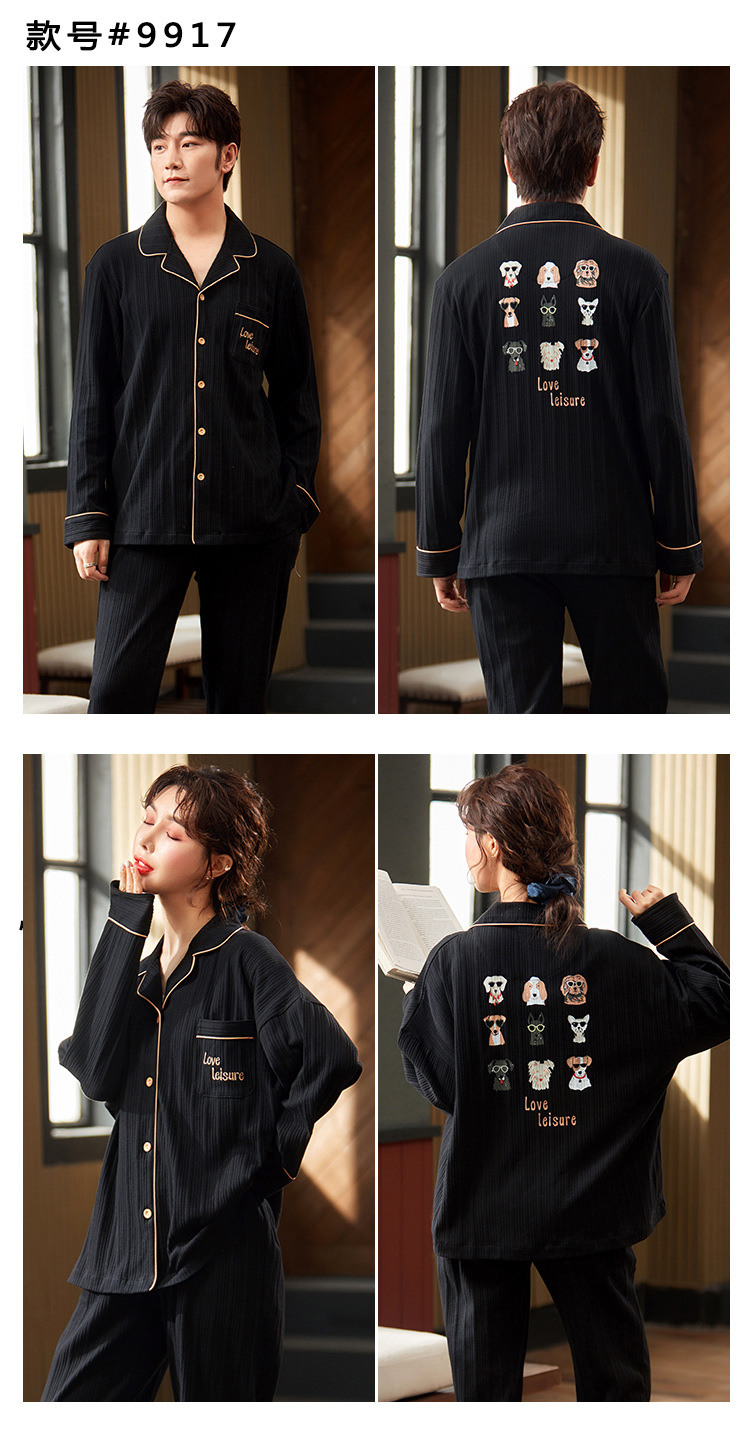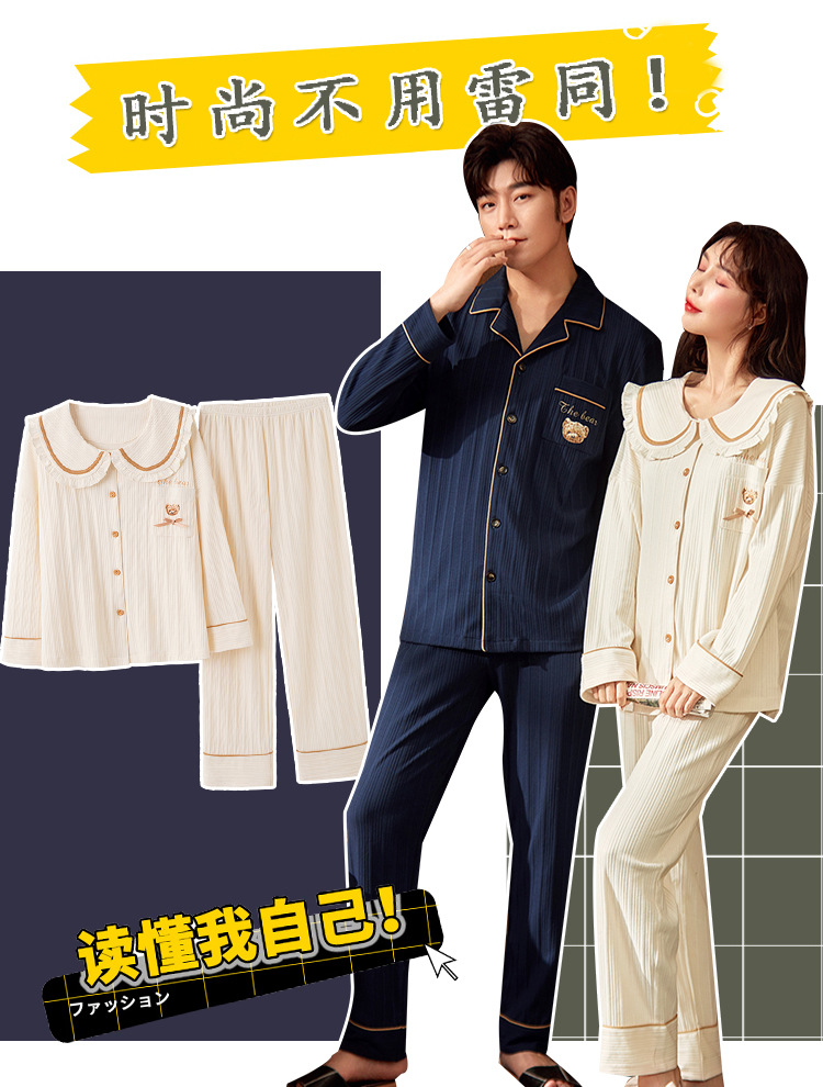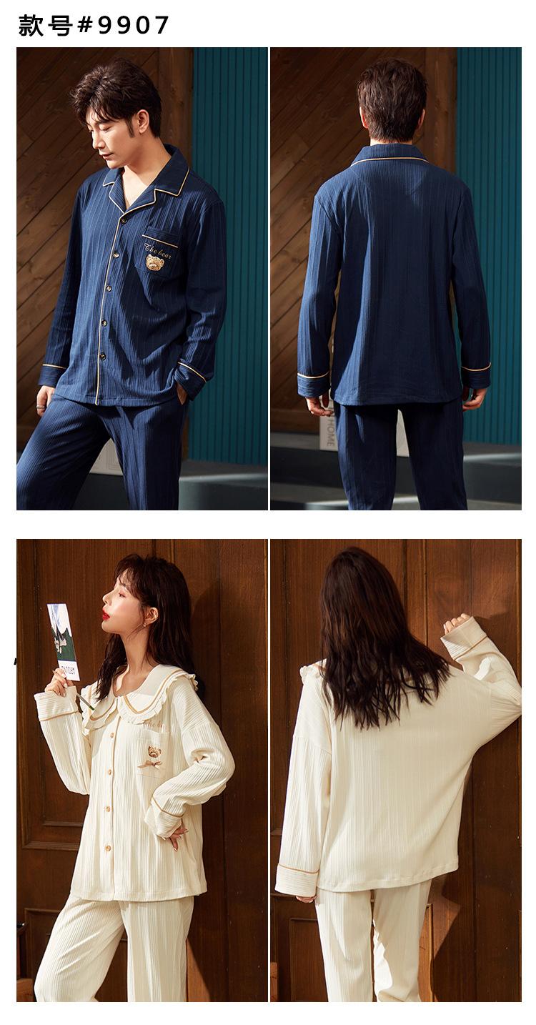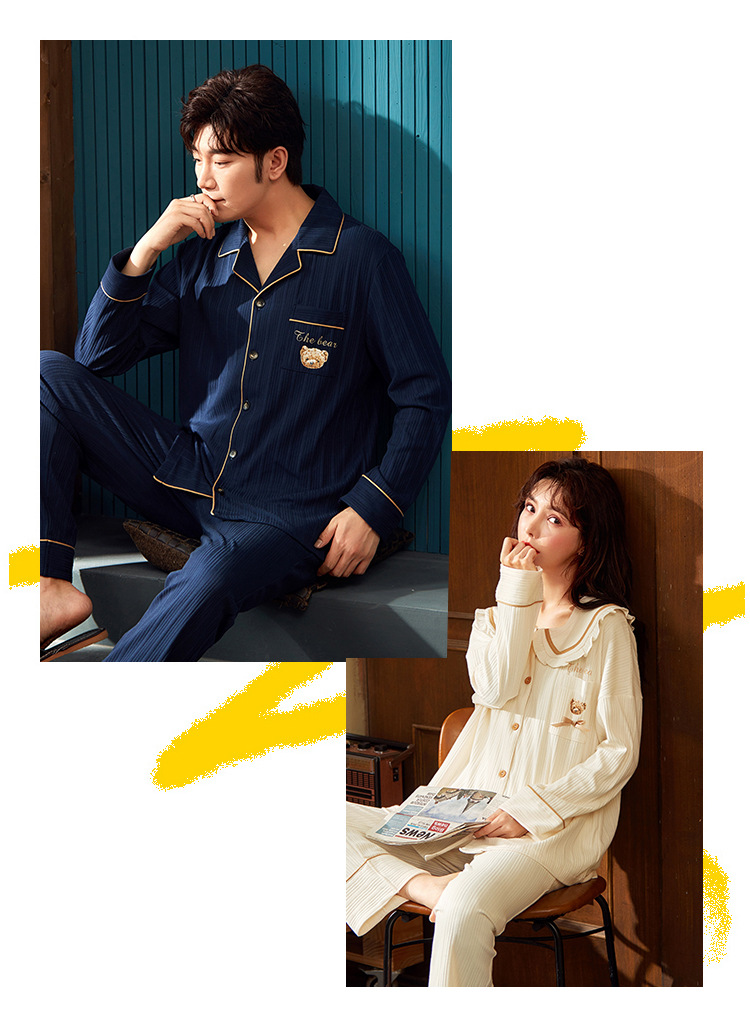 春秋款【情侣睡衣】纯棉长袖 秋冬季男士女士 可爱大码开衫家居服