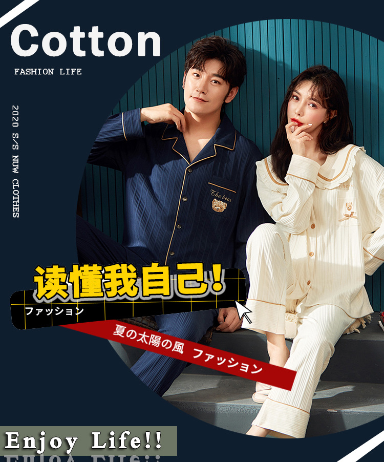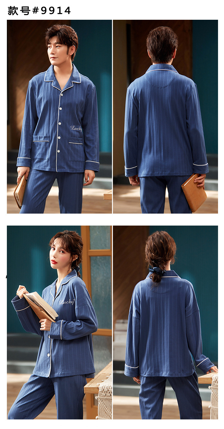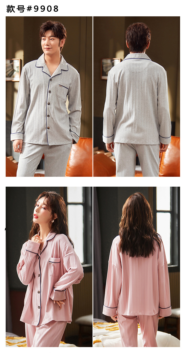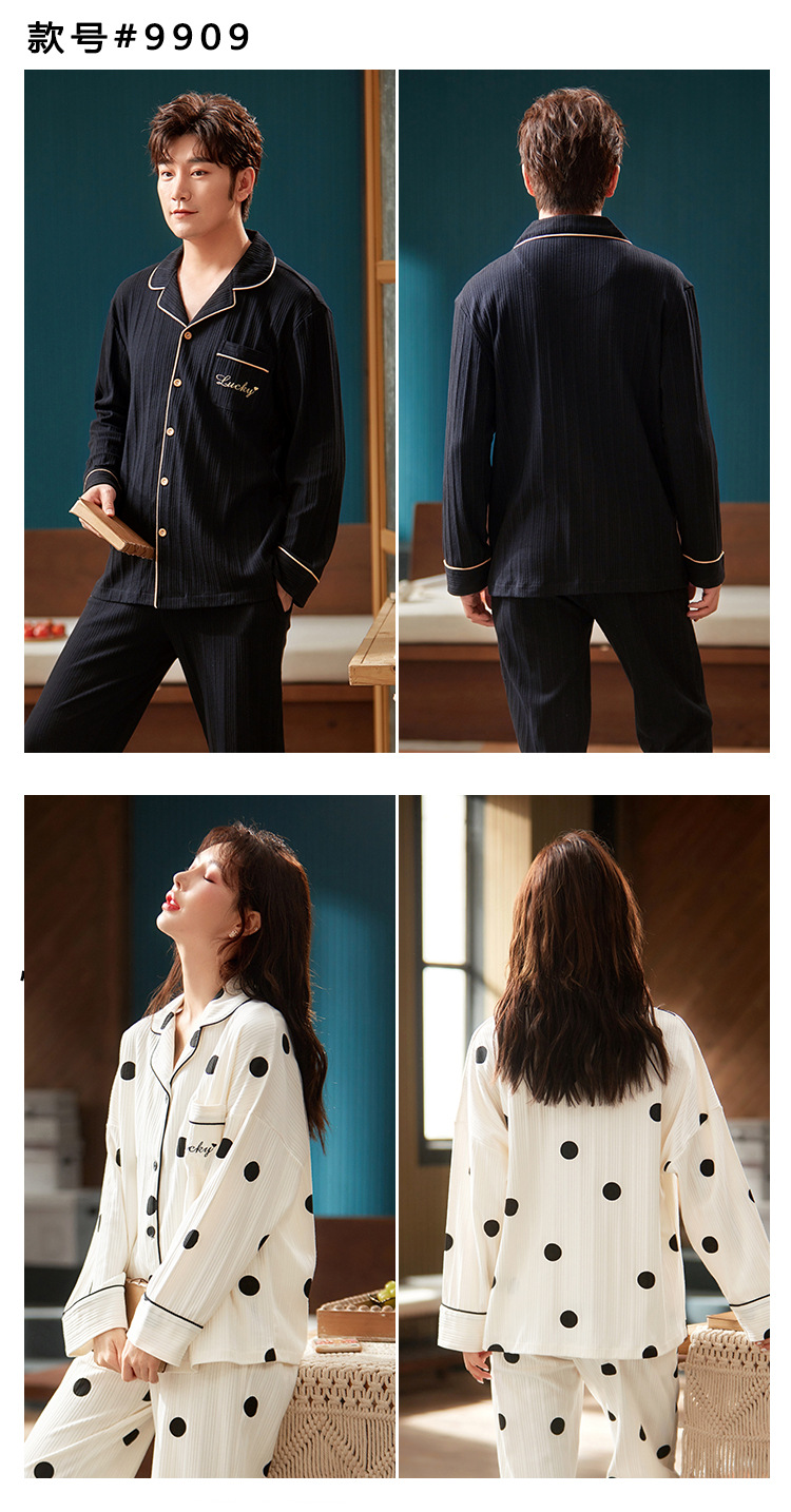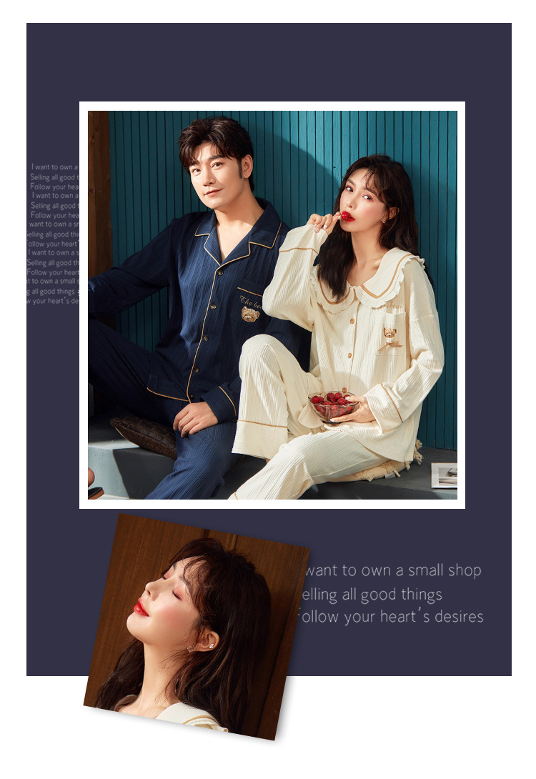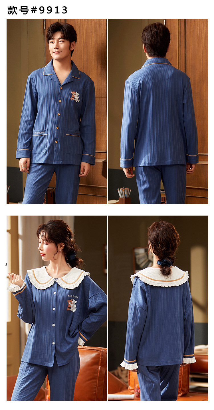 春秋款【情侣睡衣】纯棉长袖 秋冬季男士女士 可爱大码开衫家居服