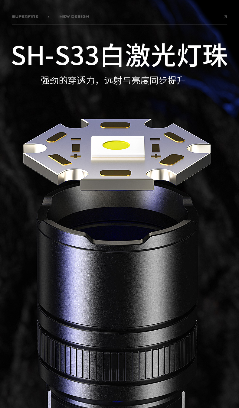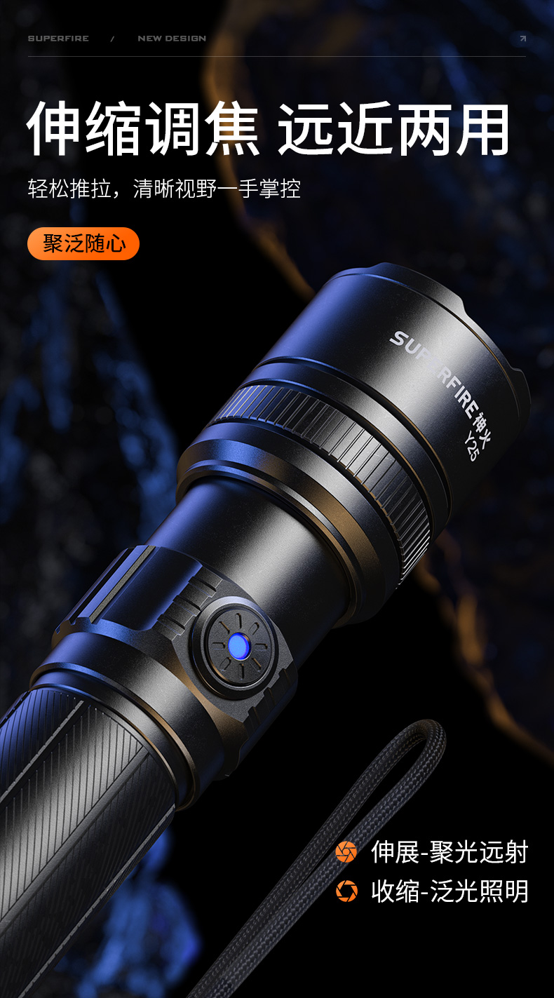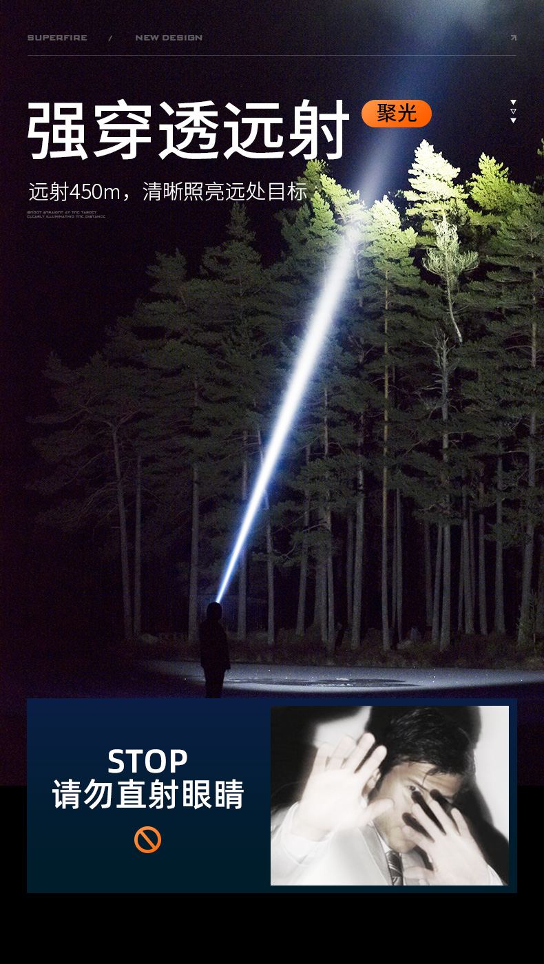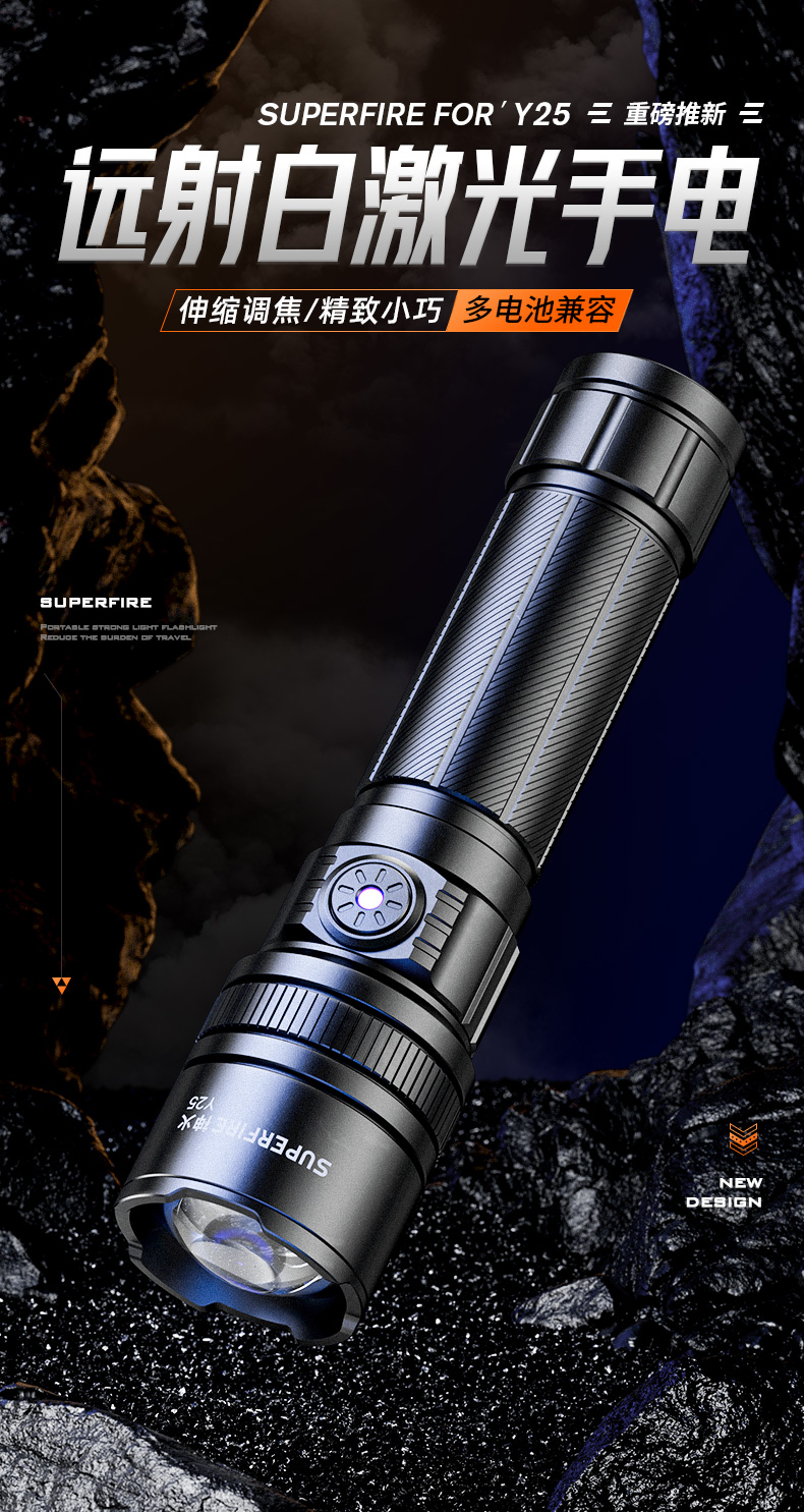 SUPERFIRE神火Y25超亮白激光远射户外家用应急手电筒