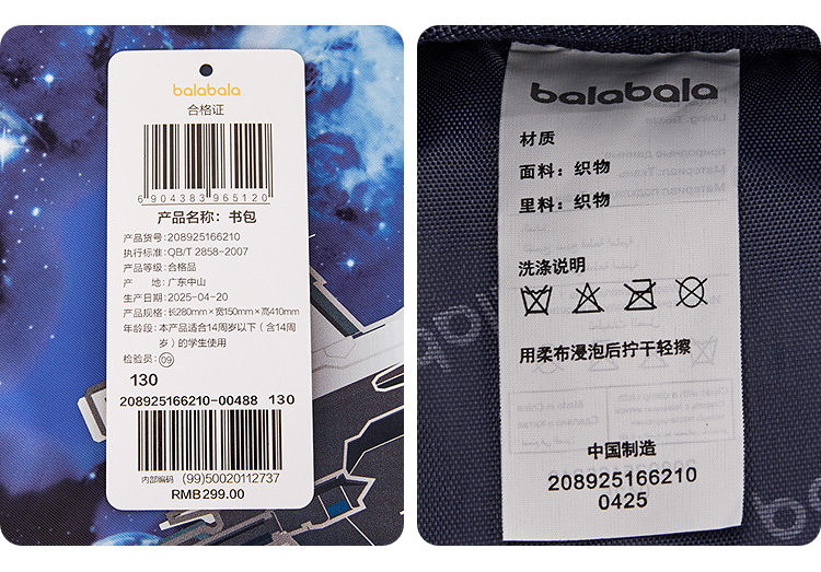 巴拉巴拉儿童书包男童双肩包星空数码印花护脊减负大容量时尚酷炫