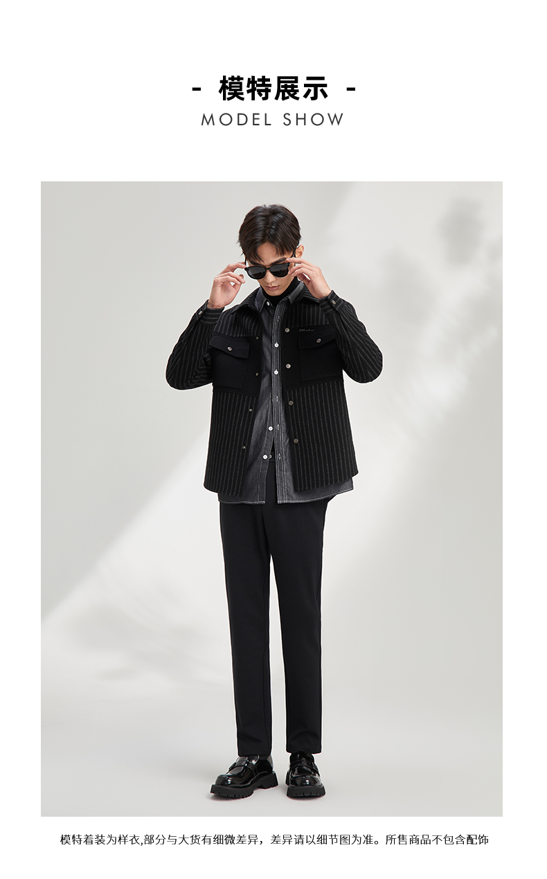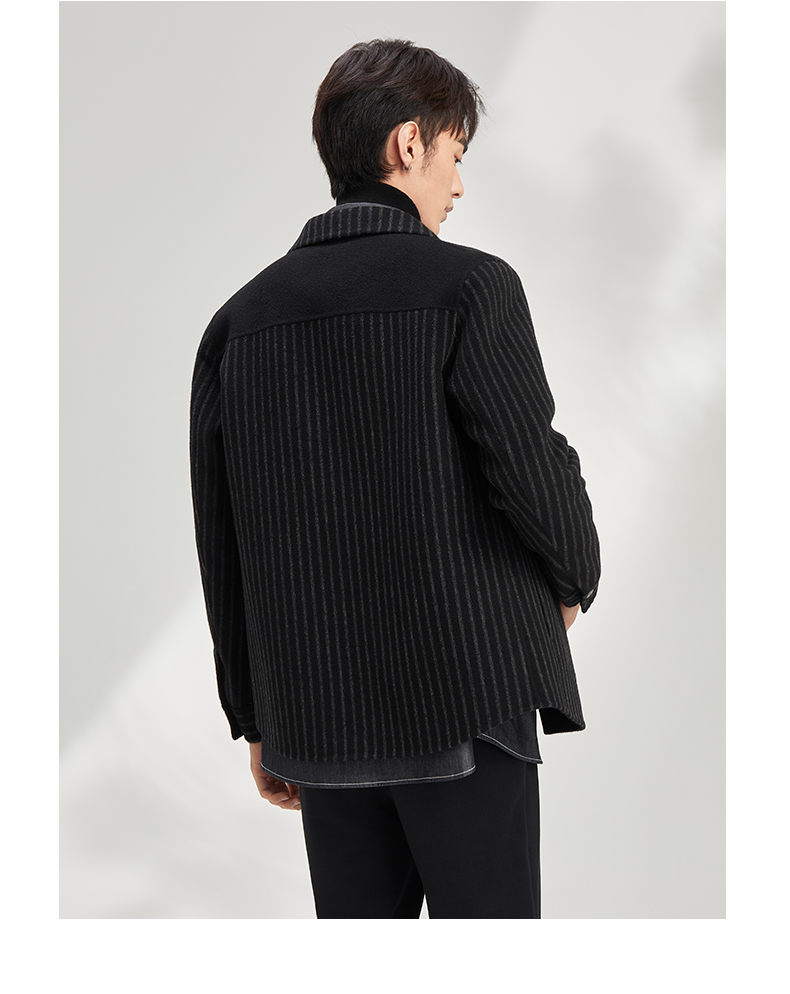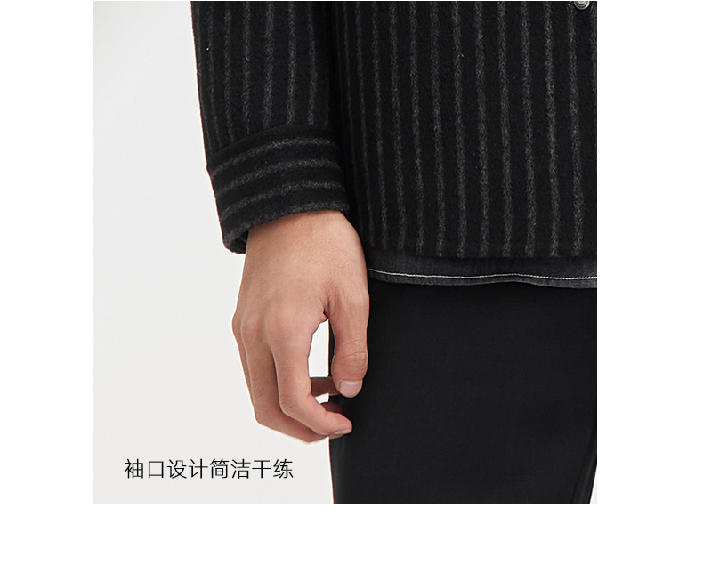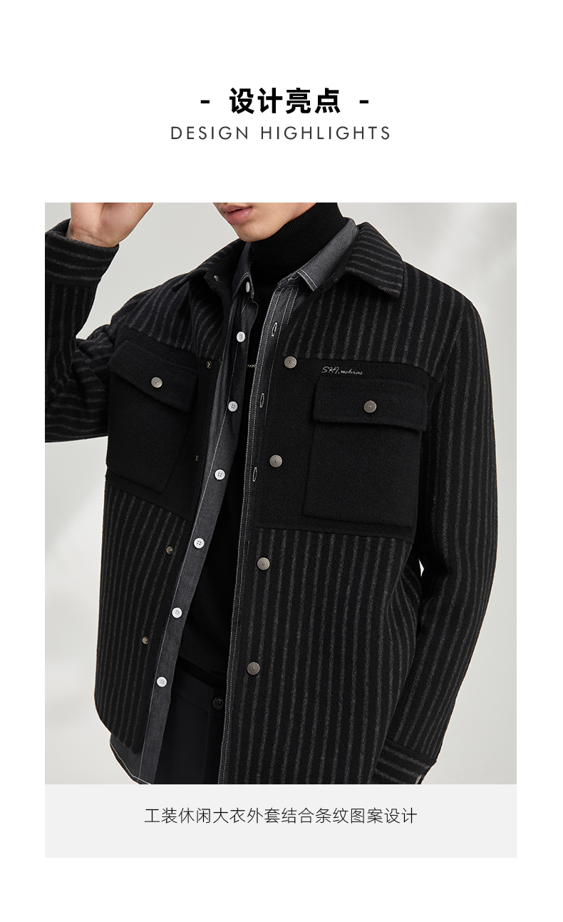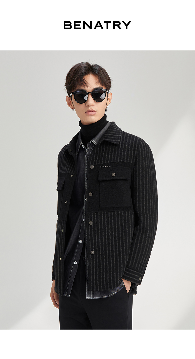 贝纳川休闲竖条纹衬衫式男士外套大衣ECY328004402