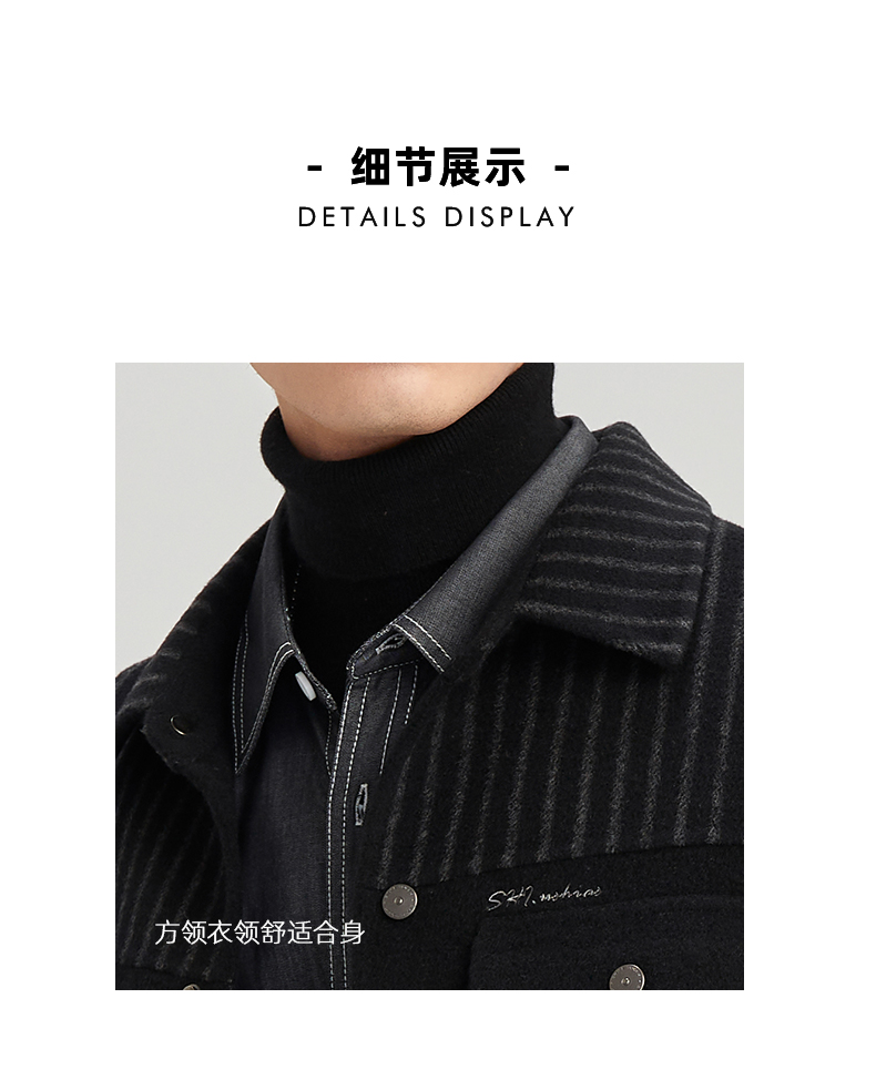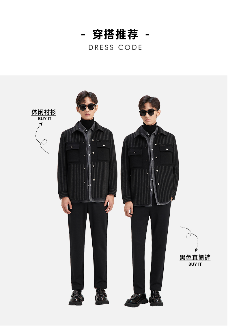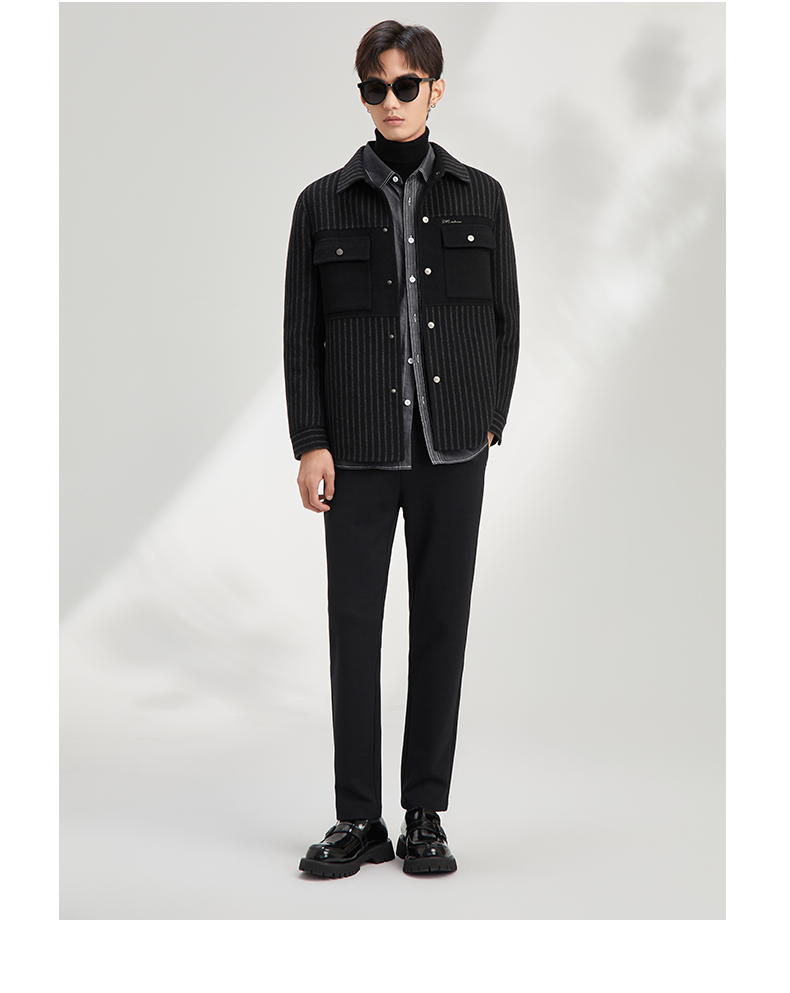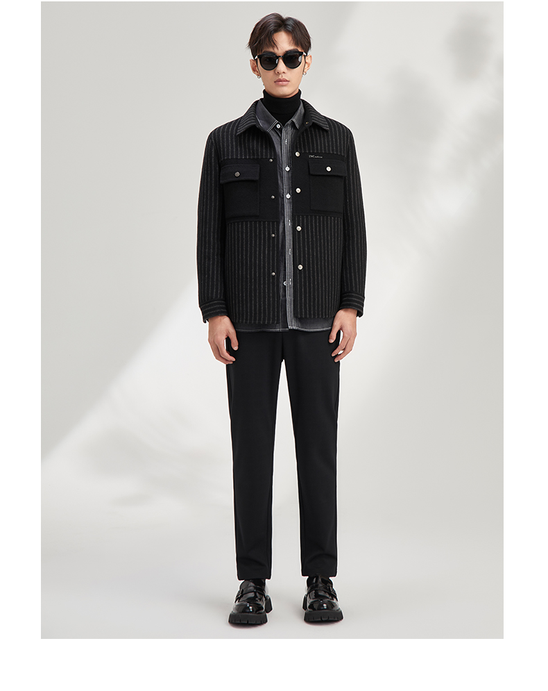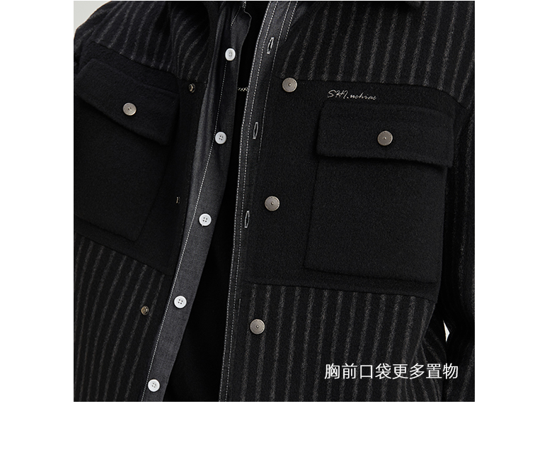贝纳川休闲竖条纹衬衫式男士外套大衣ECY328004402