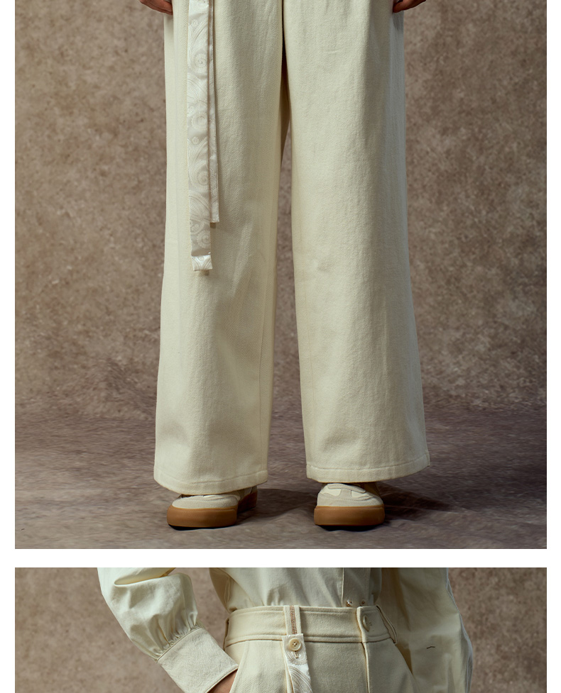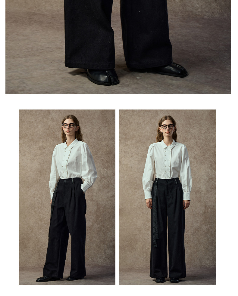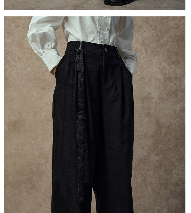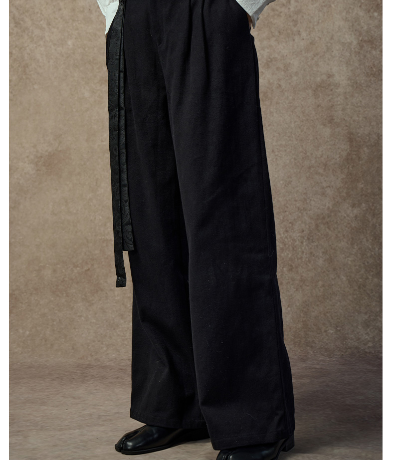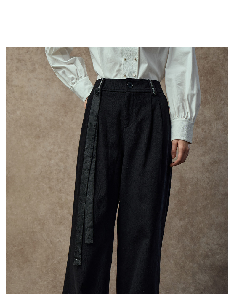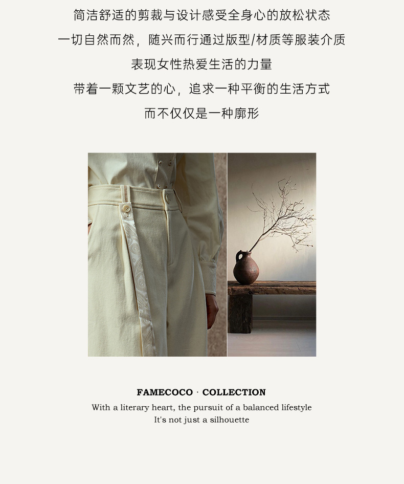 Famecoco范可儿洗水棉宽松加厚直筒阔腿裤显瘦FAC8GA016