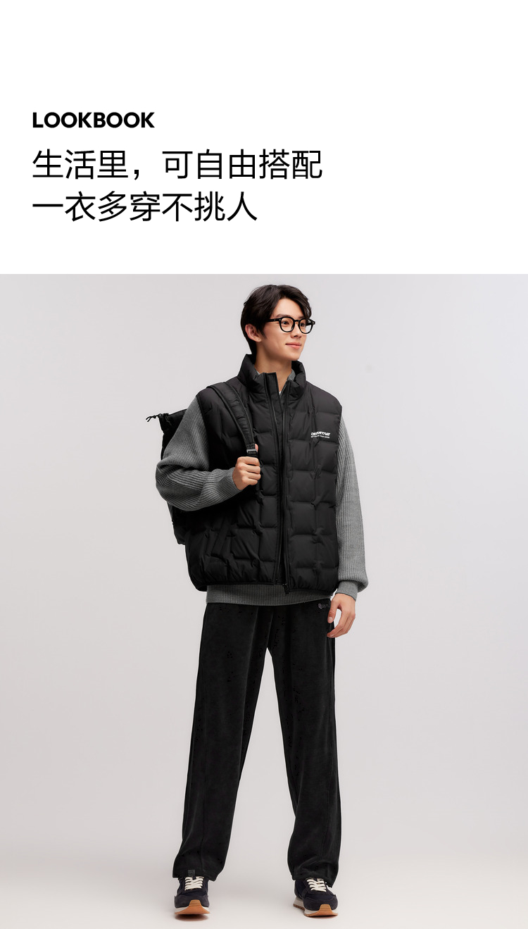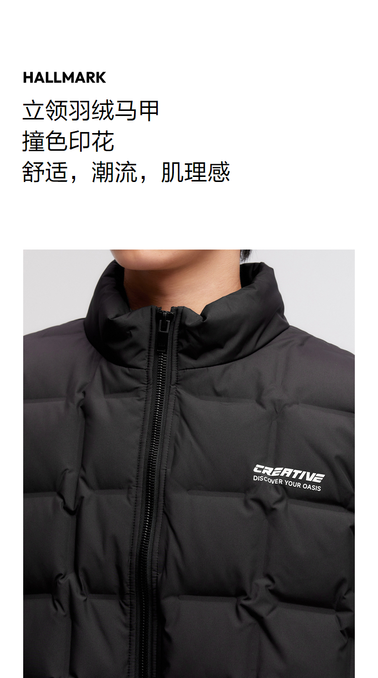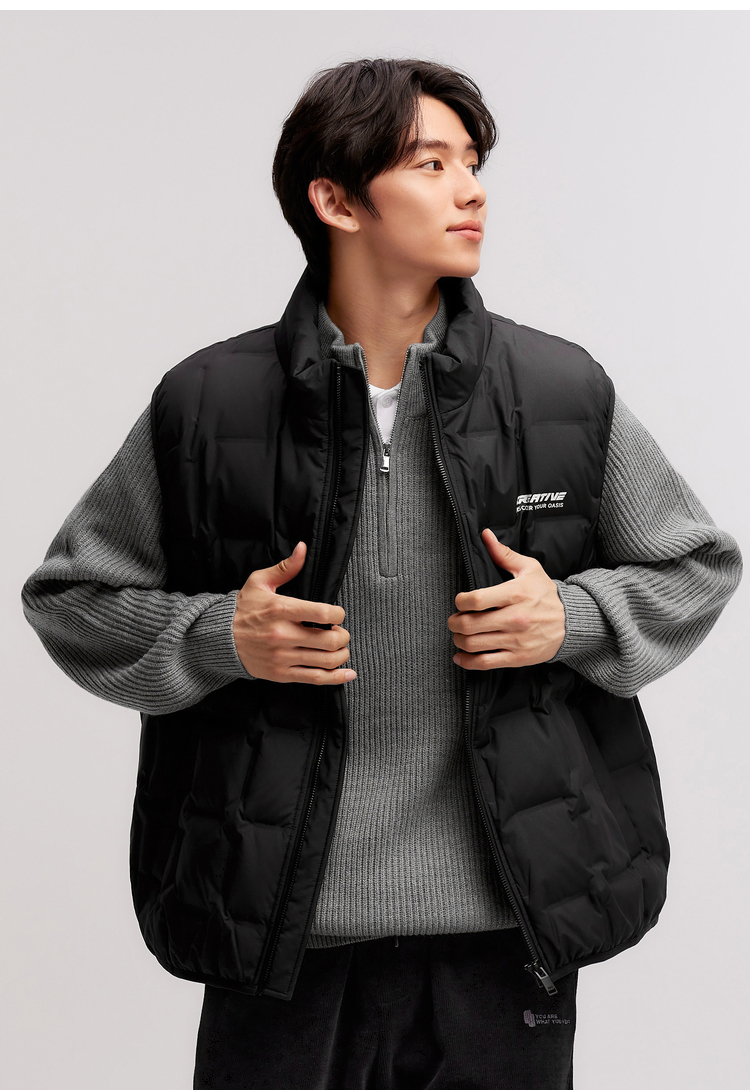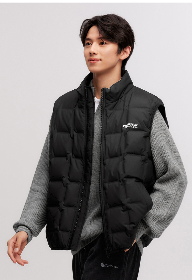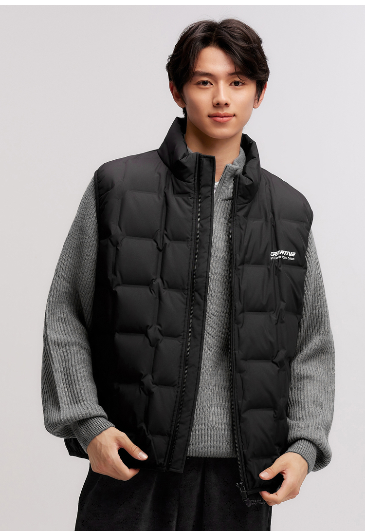 森马羽绒马甲男冬季新款立领印花肌理感外套叠穿内搭时尚百搭