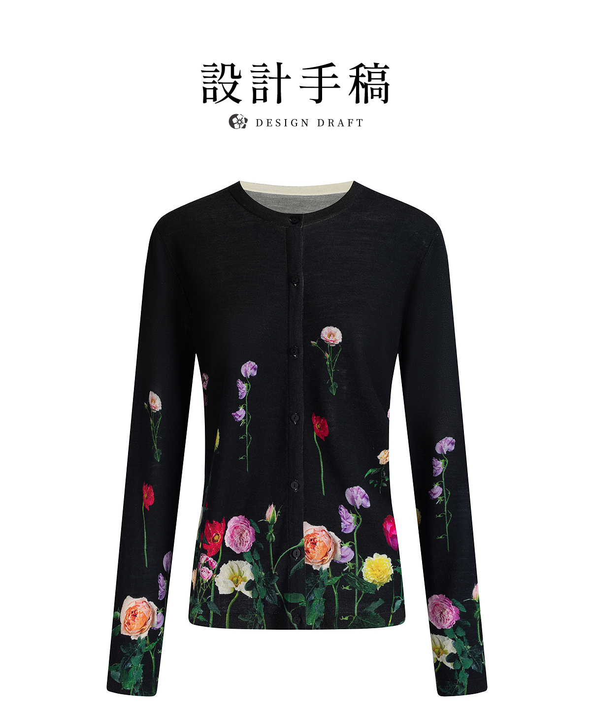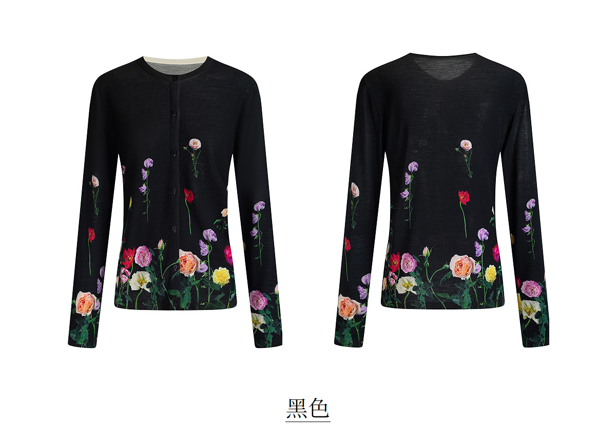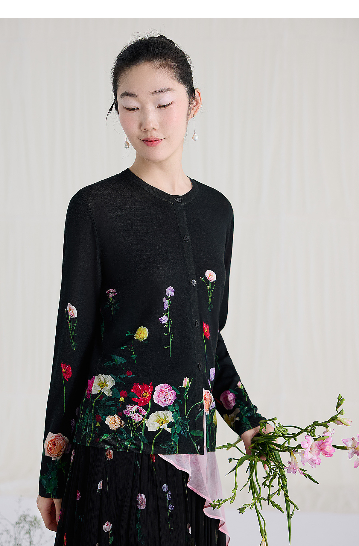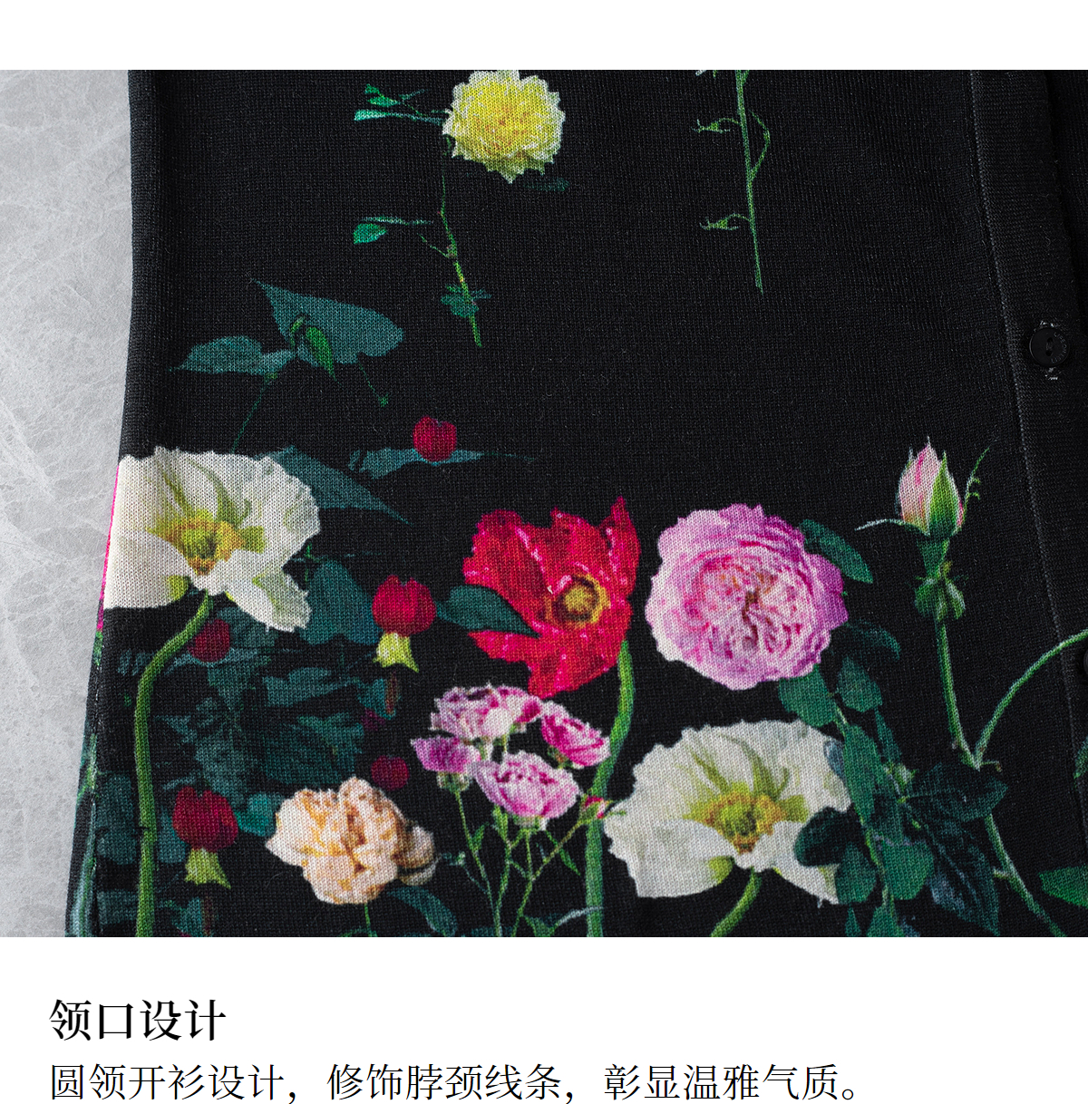 【林栖设计小店】【现货】复古玫瑰印花绵羊毛开衫2025春夏新品优雅气质显瘦毛织外套女1952304