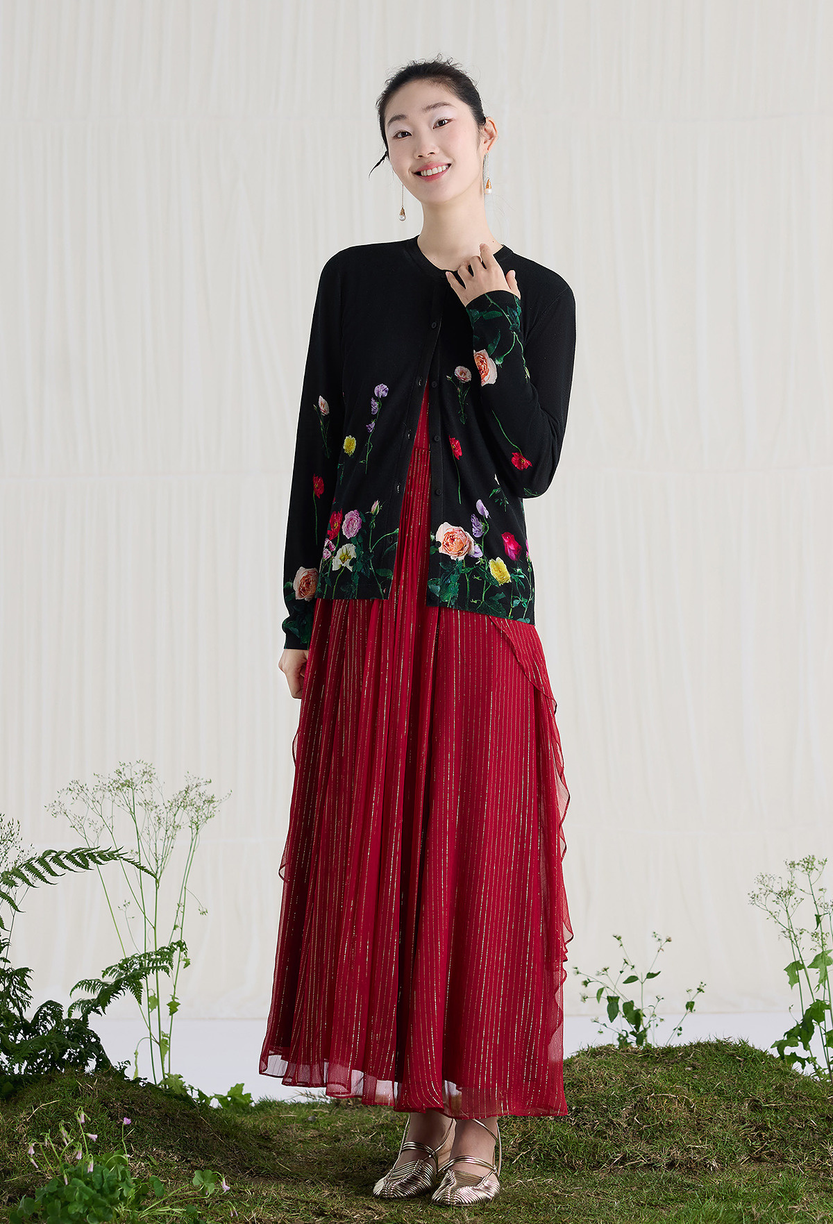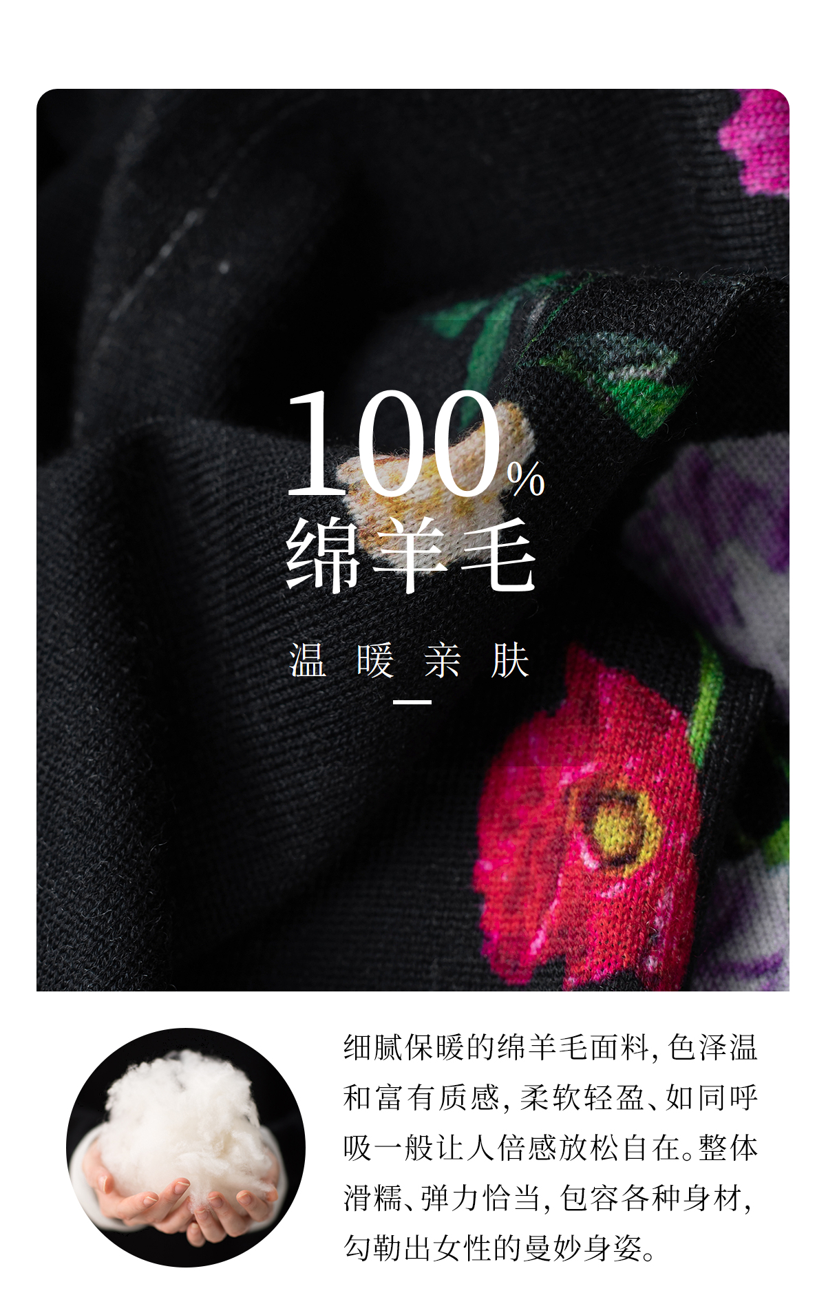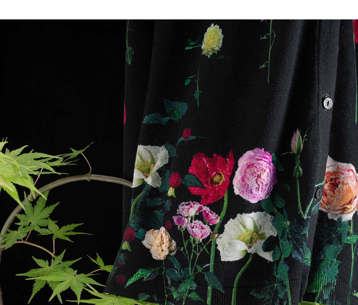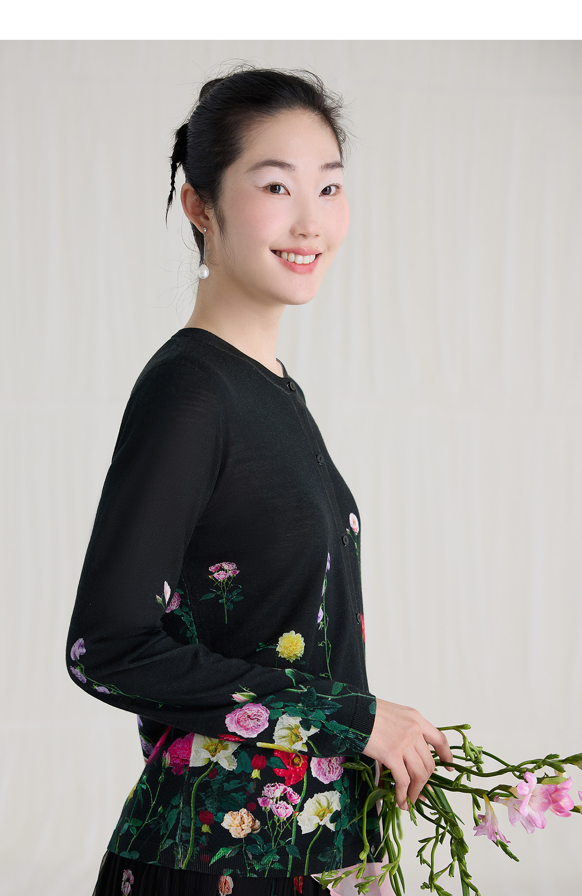 【林栖设计小店】【现货】复古玫瑰印花绵羊毛开衫2025春夏新品优雅气质显瘦毛织外套女1952304
