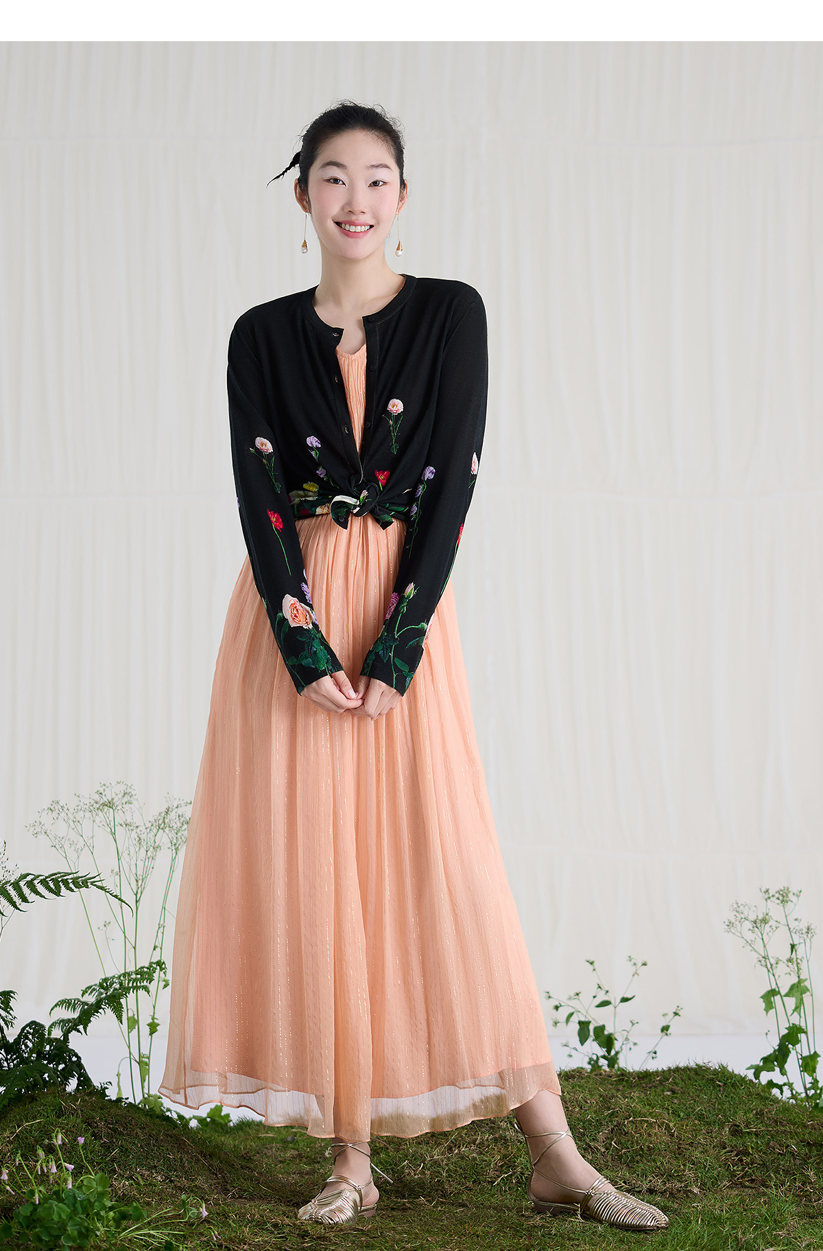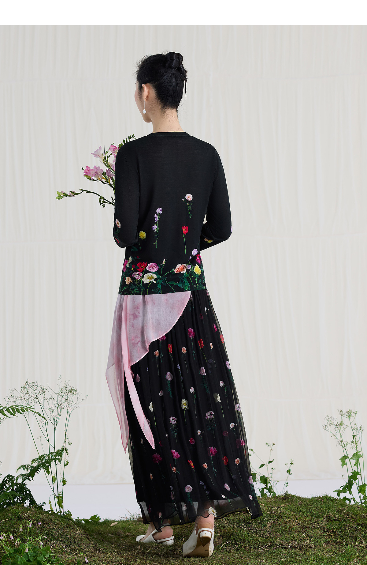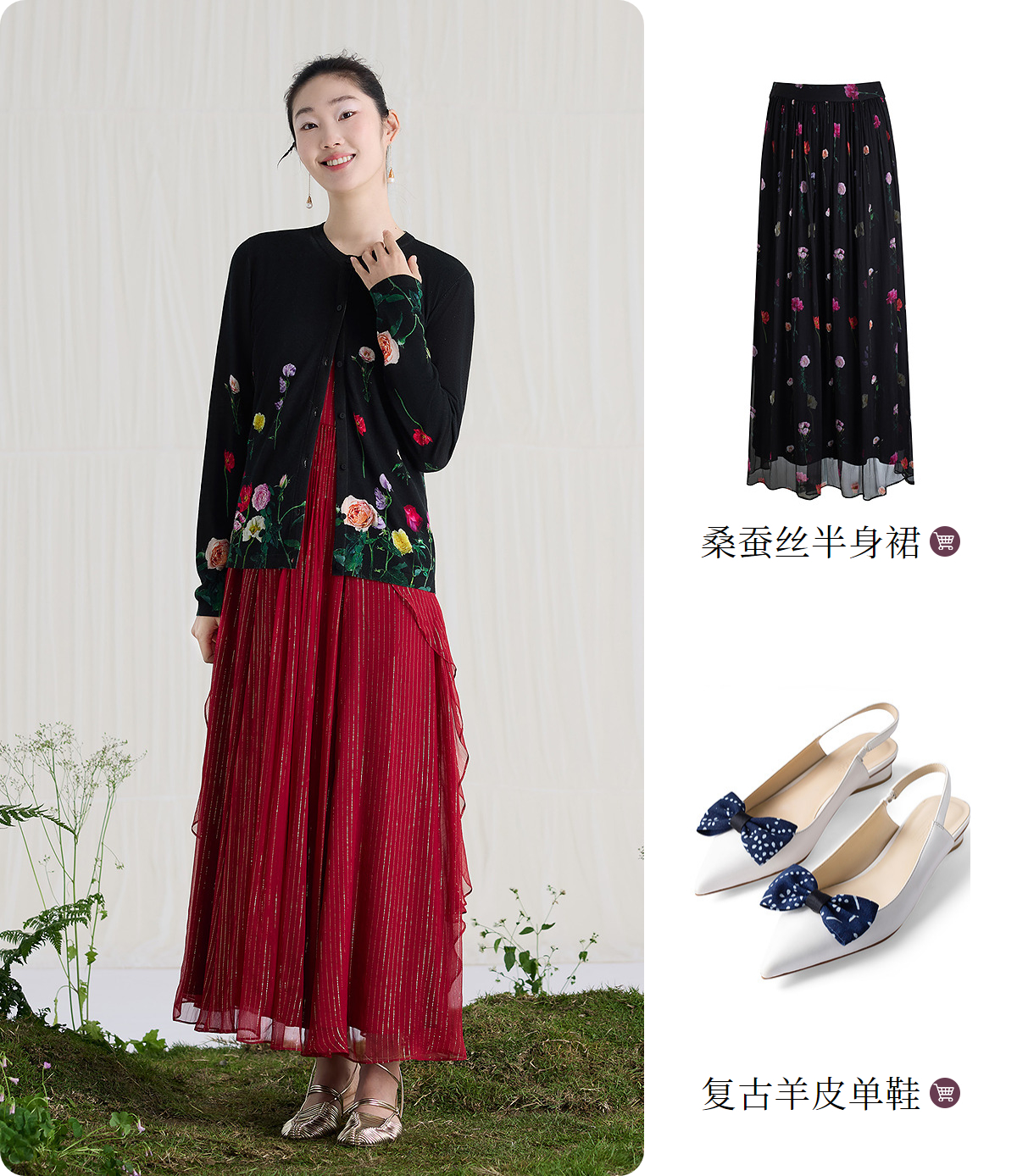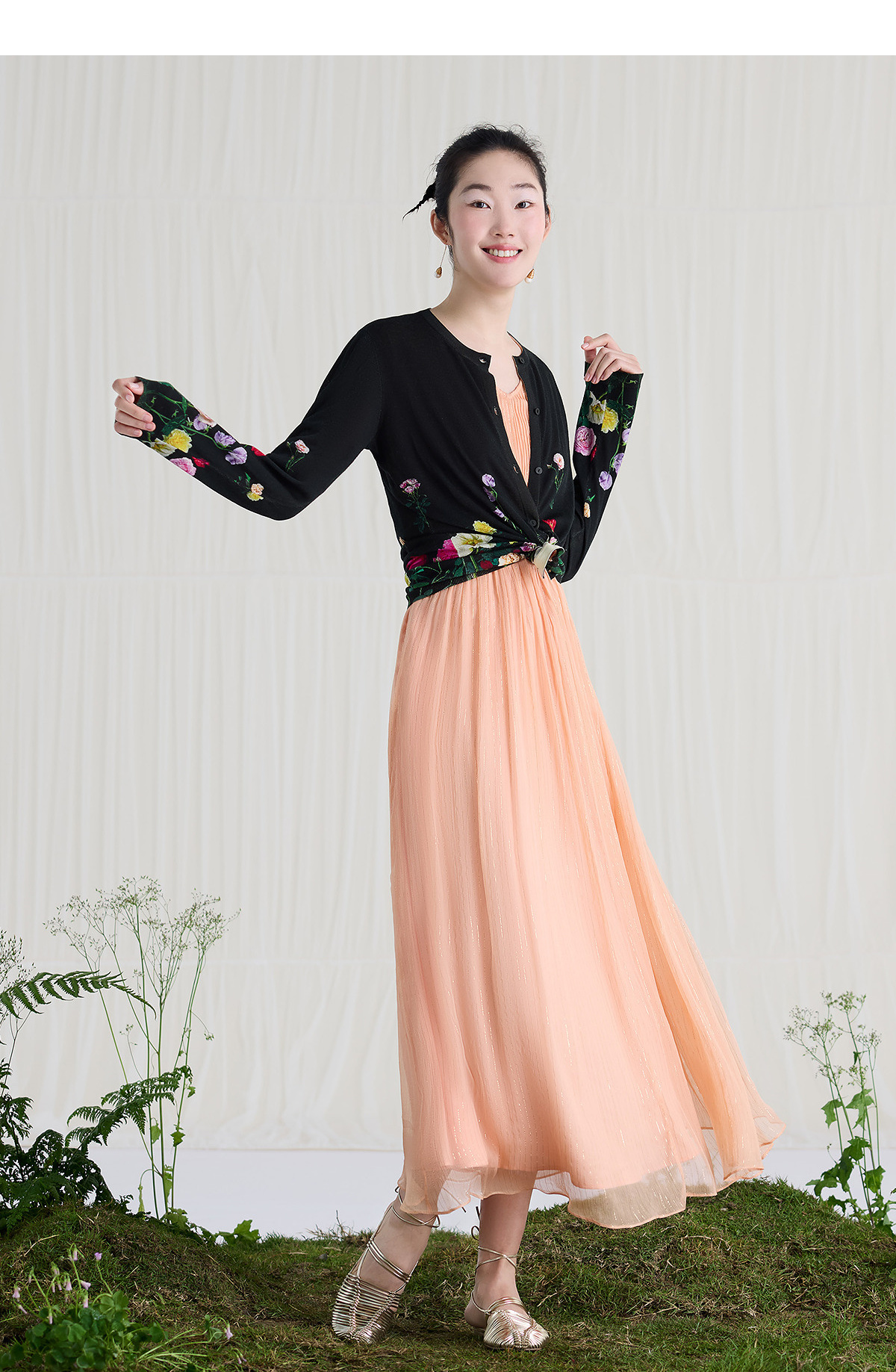 【林栖设计小店】【现货】复古玫瑰印花绵羊毛开衫2025春夏新品优雅气质显瘦毛织外套女1952304