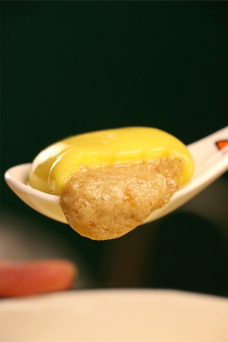 馅料给的超足,金灿灿的黄米皮,散发诱人的热气用牙齿咬开一个小口,流心芝麻就涌出来了