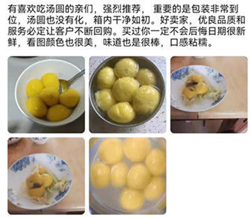 2.汤圆属于冷冻产品,发出后,在快递运输中使用冰袋+保温袋+泡沫箱包装,但是由于地区距离不一导致个别出现化冻的现象,这些均为正常现象,收到一定要及时冰箱冷冻哦!化冻不在售后范围内,请大家理解。