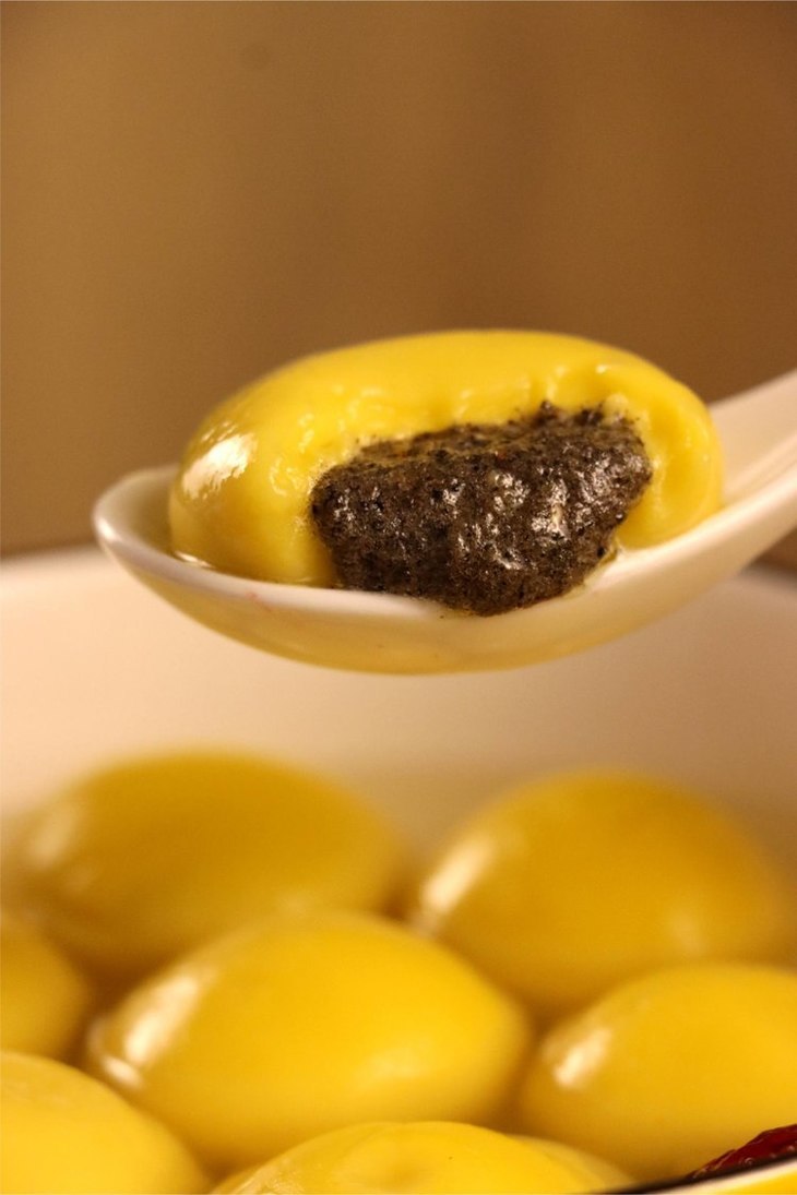 馅料给的超足,金灿灿的黄米皮散发诱人的热气,用牙齿咬开一个小流心芝麻就涌出来了😋