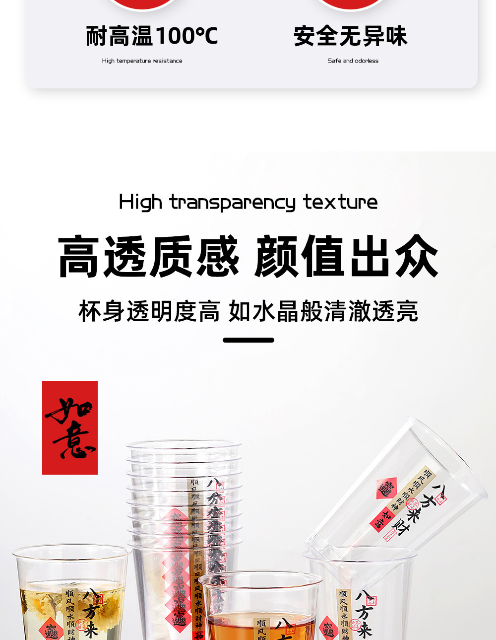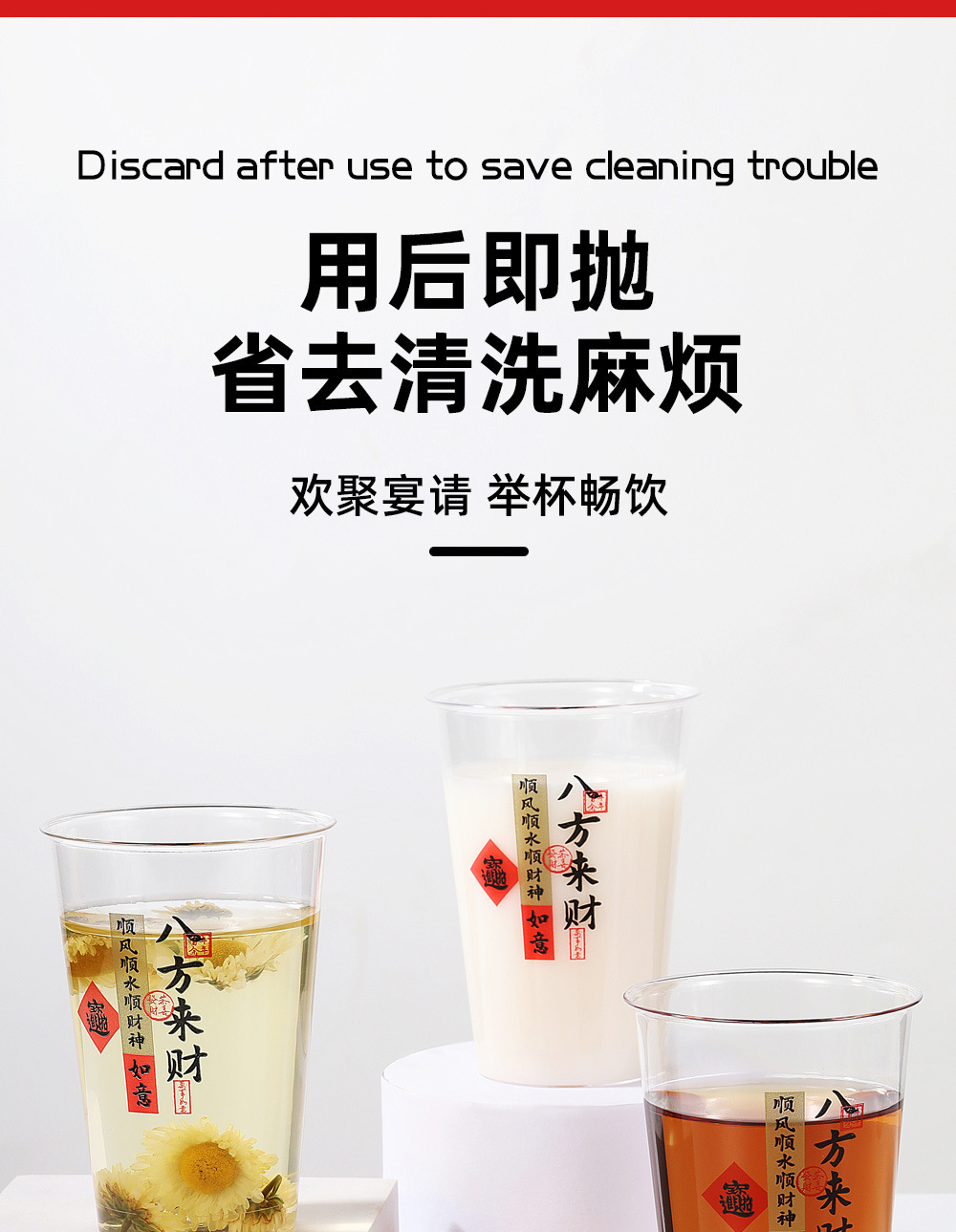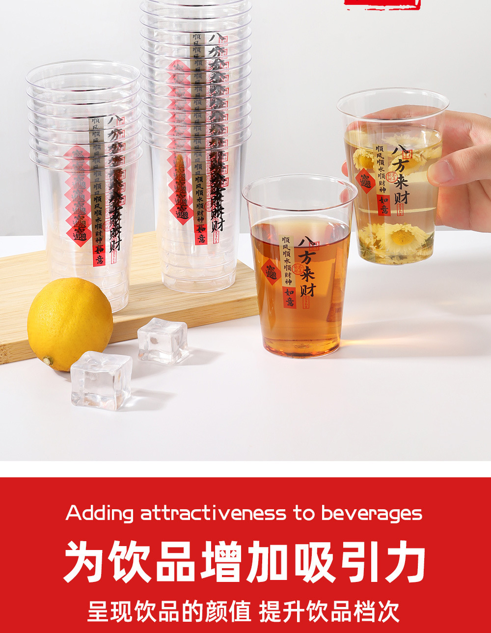 【吉祥文字❗美好寓意】八方来财新款新年一次性杯子航空杯加厚透明茶水杯招待杯喝酒饮料杯。rf