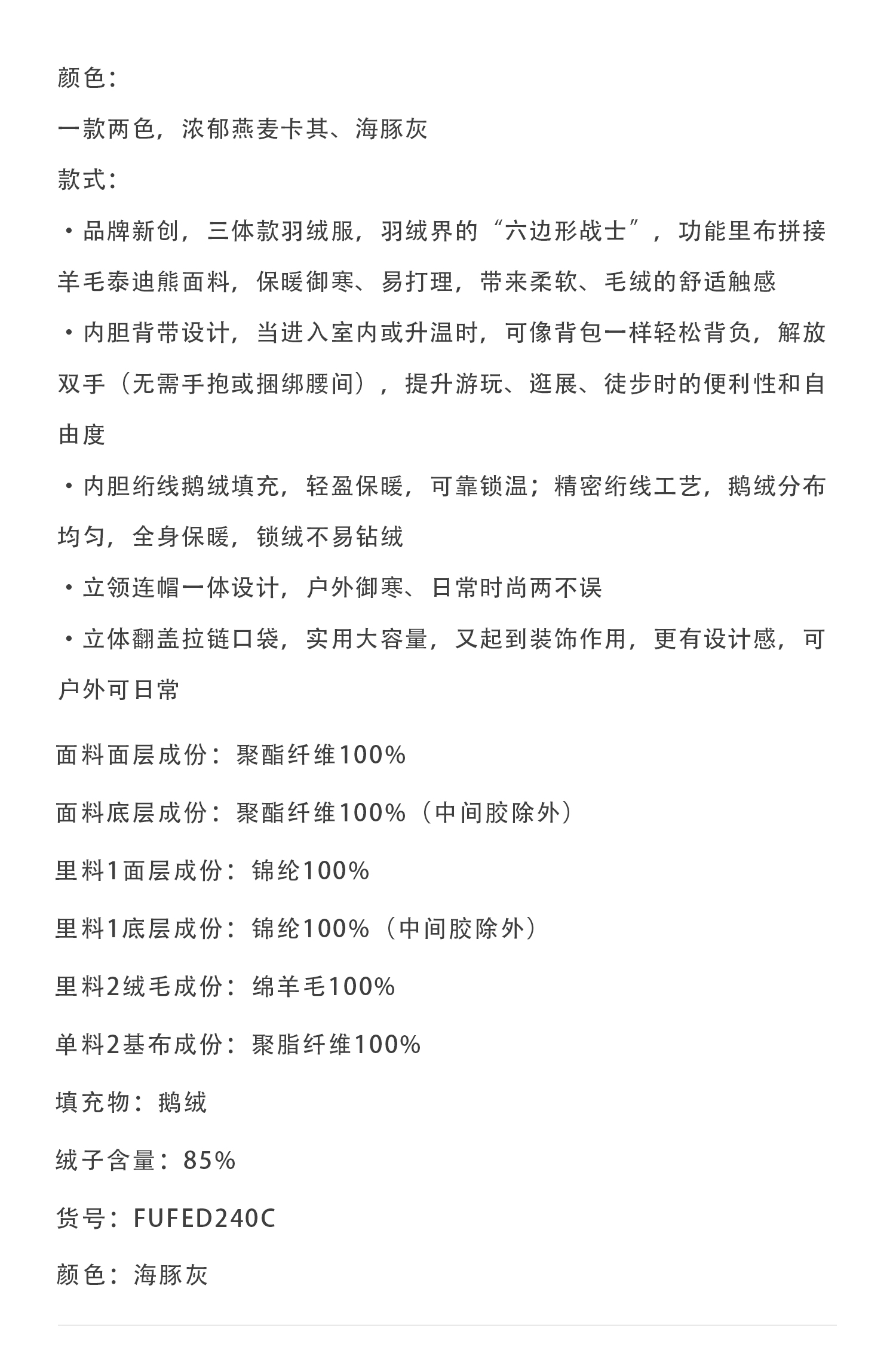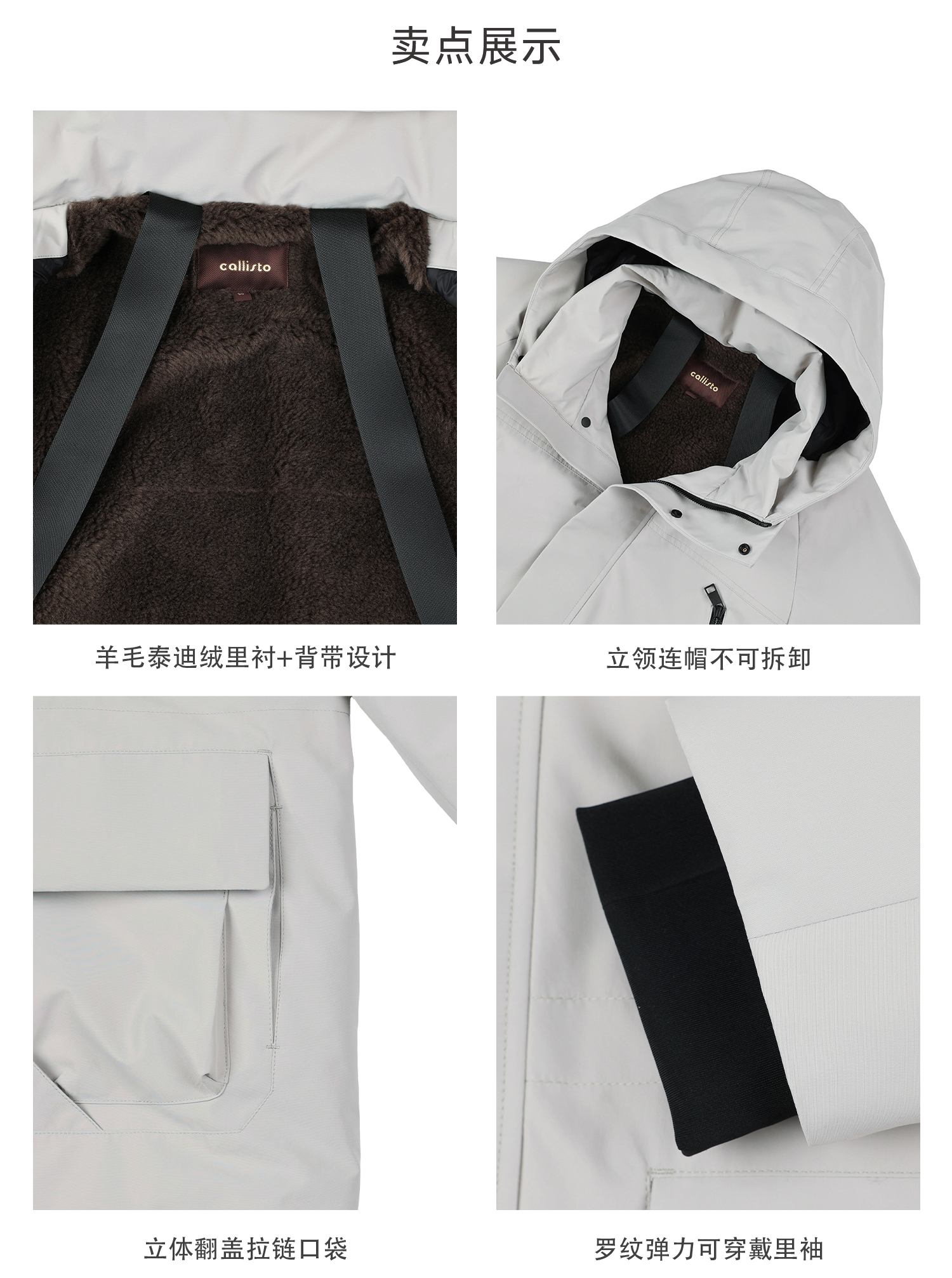 callisto海豚灰连帽鹅绒羽绒服