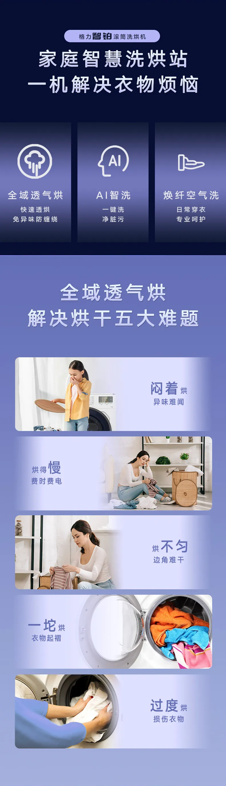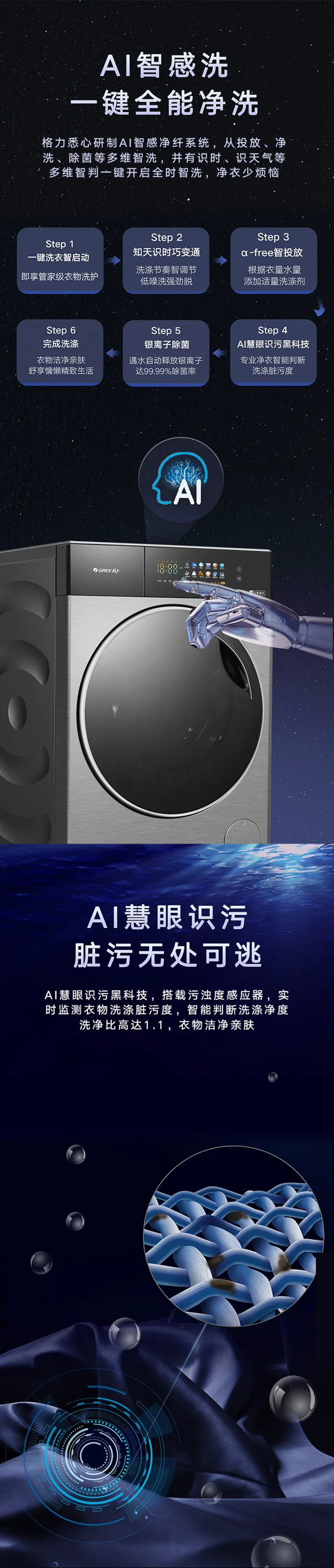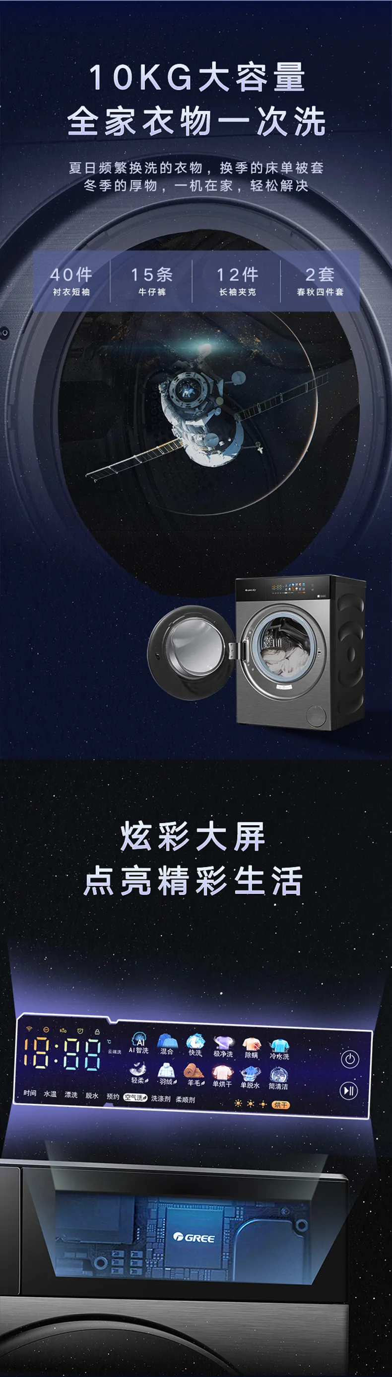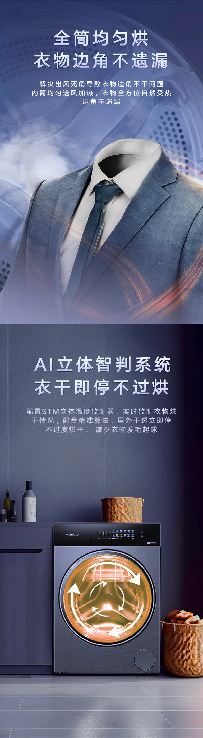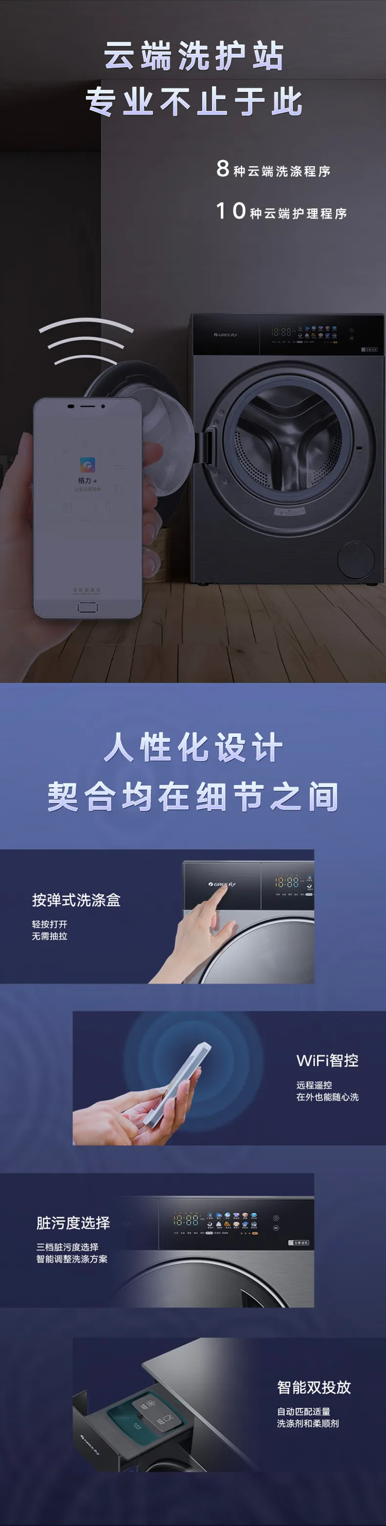 格力·智铂 滚筒洗衣机 洗烘一体10kg XQG100-DWB1401Ea1(玄青灰)