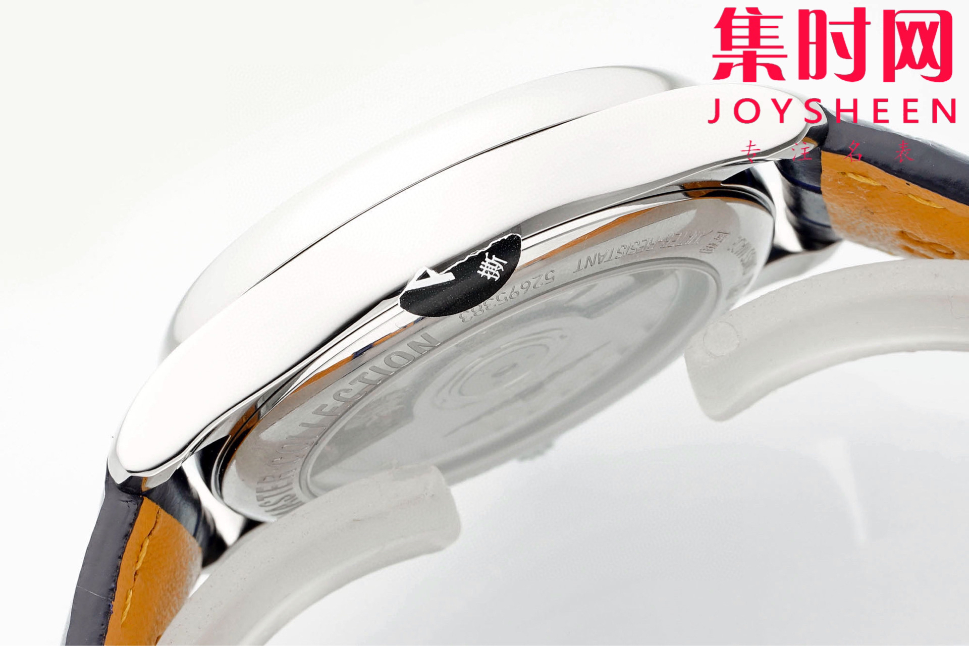 盘面匠心设计,搭配阿拉伯数字时标或钻石时标更是彰显奢华品味。6点钟位置巧妙地融入了日期显示环与月相显示窗口,使得佩戴者在欣赏月相变化的同时,也能便捷地获取当前日期信息。而银色麦粒纹饰的点缀,是对名匠腕表经典元素的完mei传承。尤其是那优美的柳叶指针,更是巧妙地衬托出整体设计的和谐与美感。