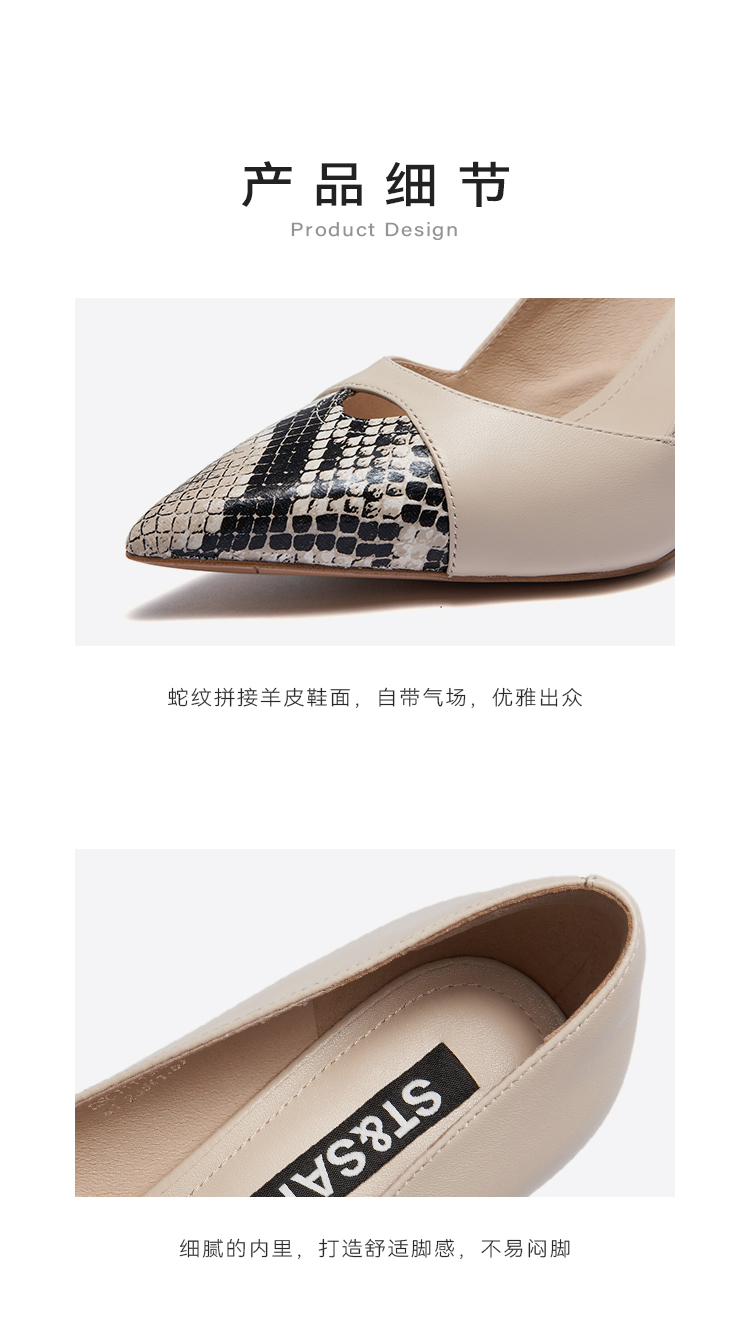 星期六时髦蛇纹尖头镂空细高跟SSC1111353
