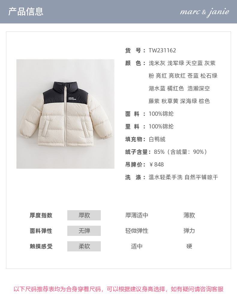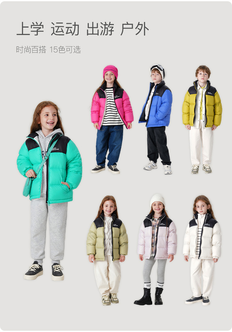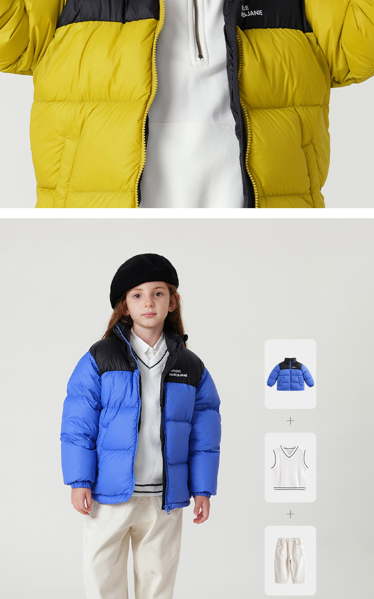 【三防】马克珍妮冬装新款男女童时尚撞色保暖羽绒服231162