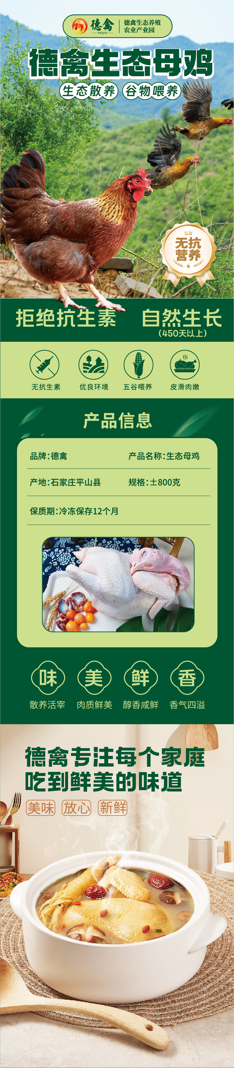 德禽/生态散养 母鸡(约900g)*两只