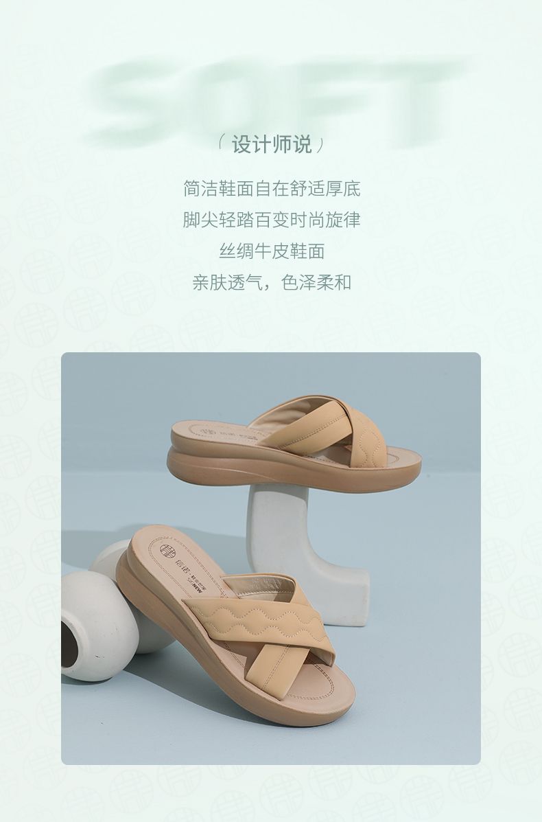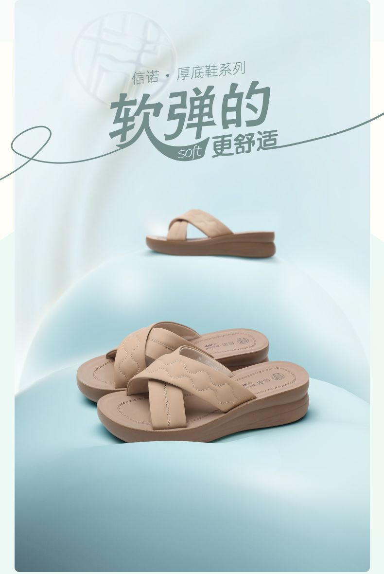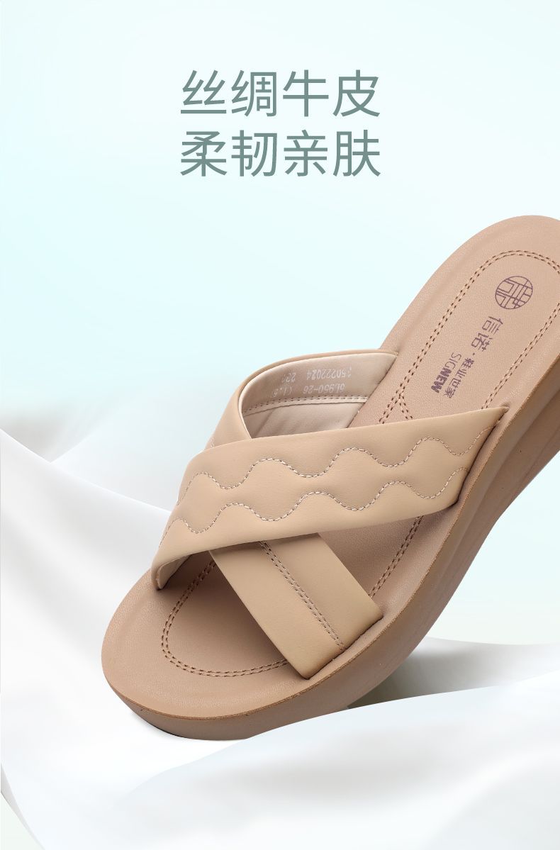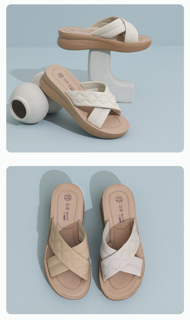信诺丝绸牛皮厚底舒适真皮拖鞋女2025夏季新款软底轻便外穿凉拖鞋5L950-26