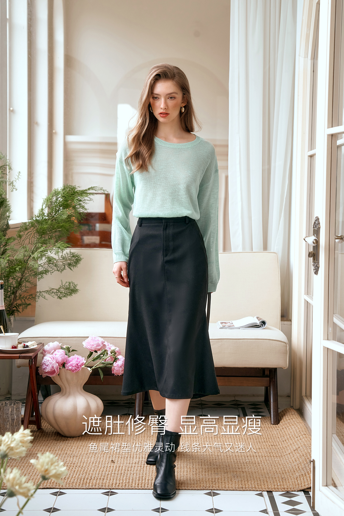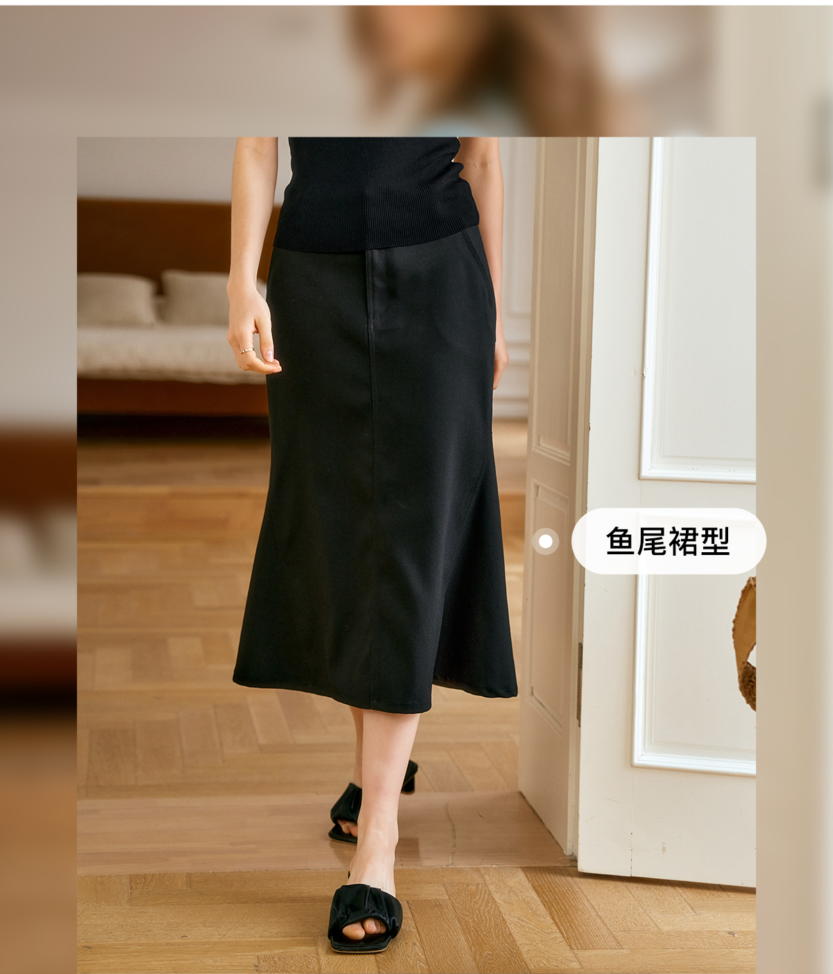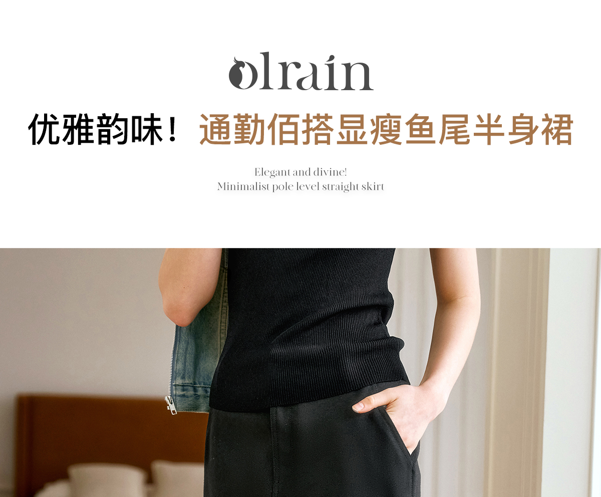 OLrain欧芮儿法式黑色半身裙女夏季2024年新款通勤气质中长鱼尾裙