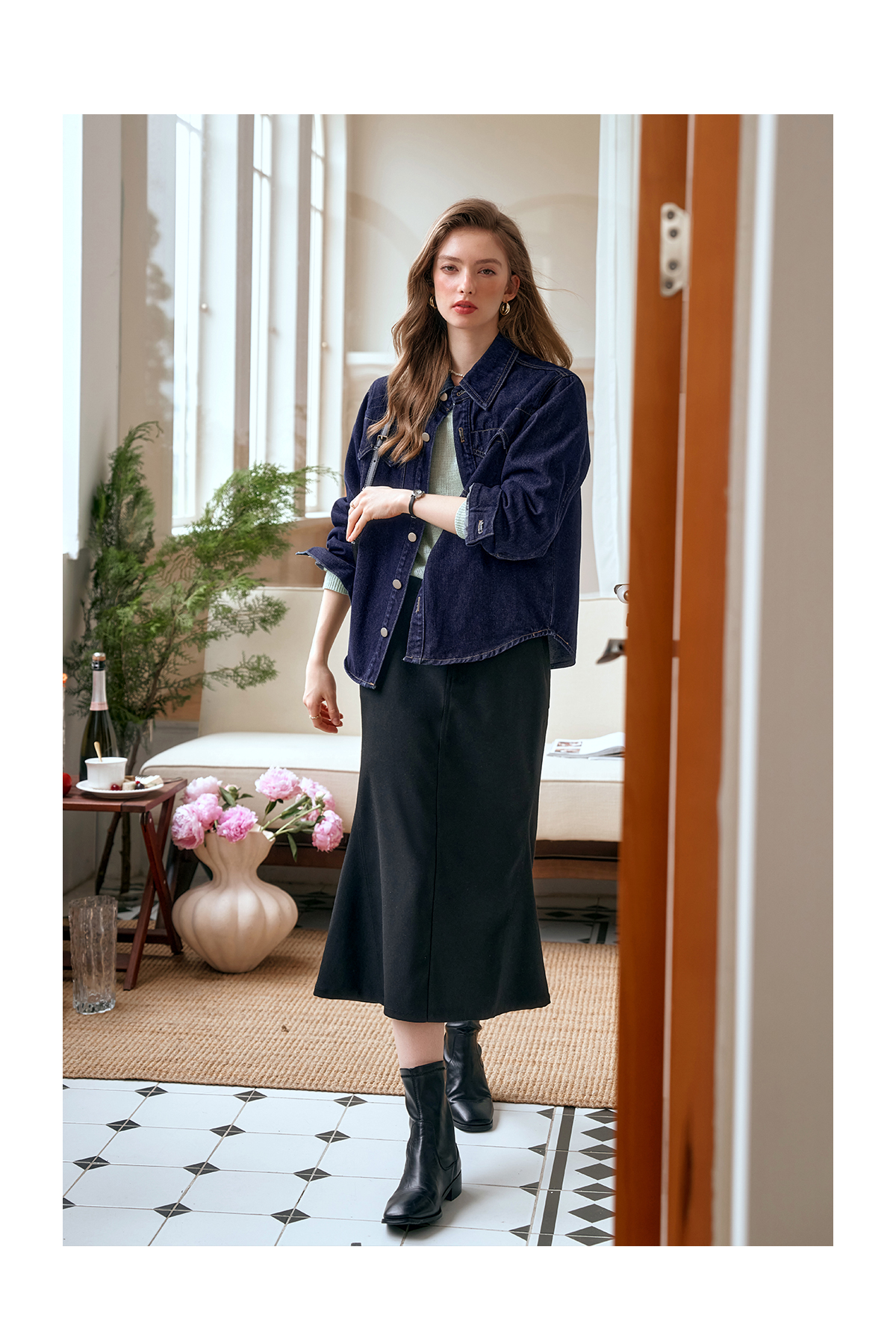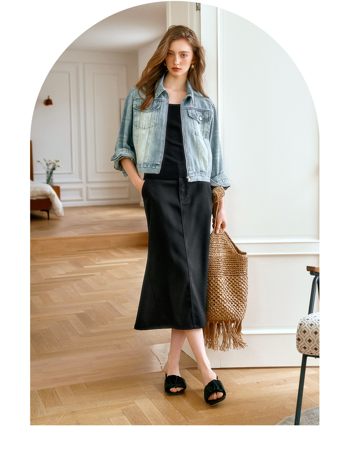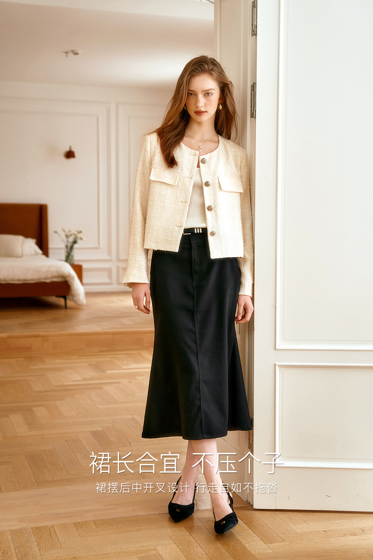 OLrain欧芮儿法式黑色半身裙女夏季2024年新款通勤气质中长鱼尾裙