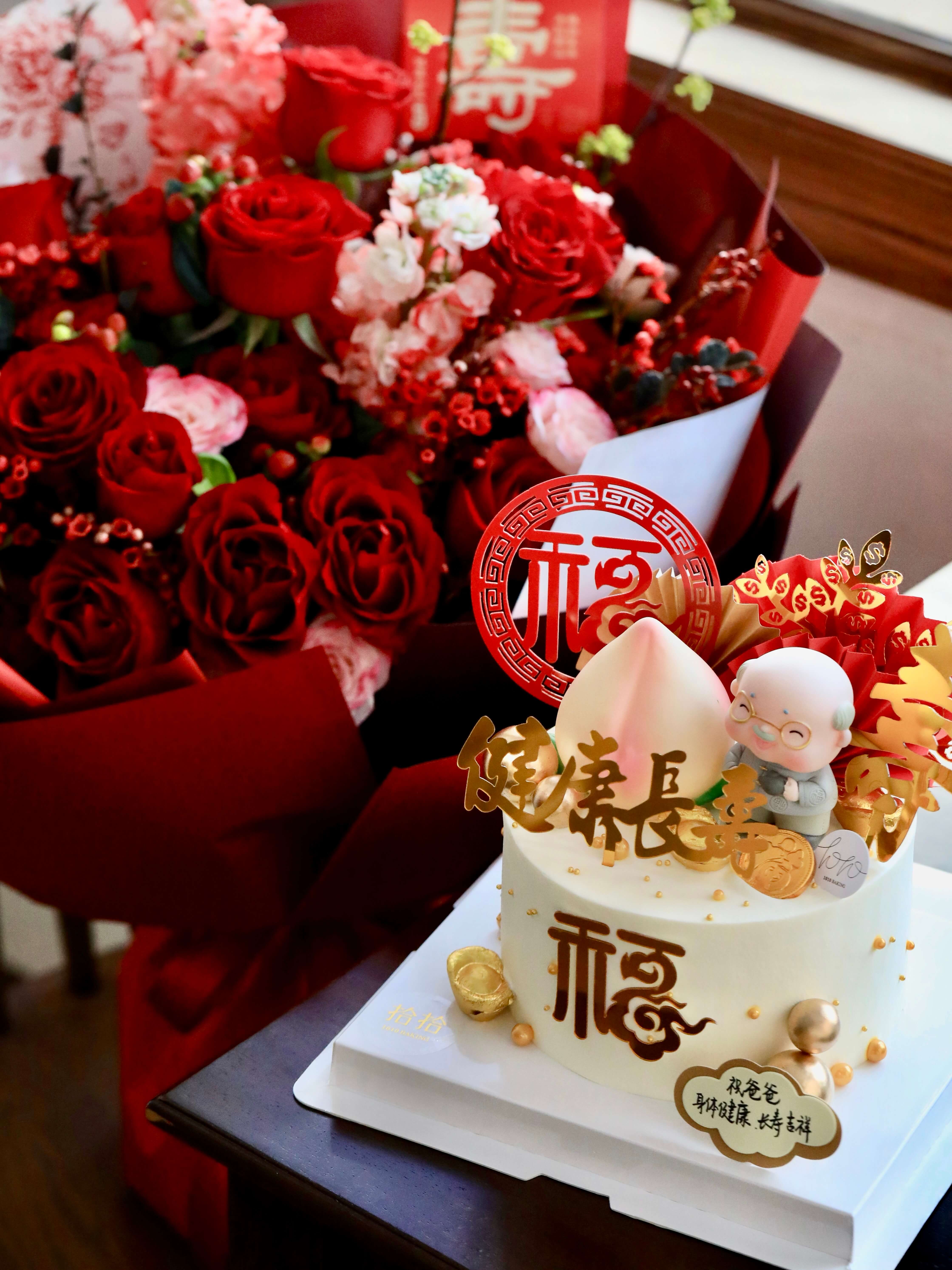 「福暖四季·寿桃祝寿」可换寿星摆件·100%动物奶油(附图6寸·提前3小时预订)