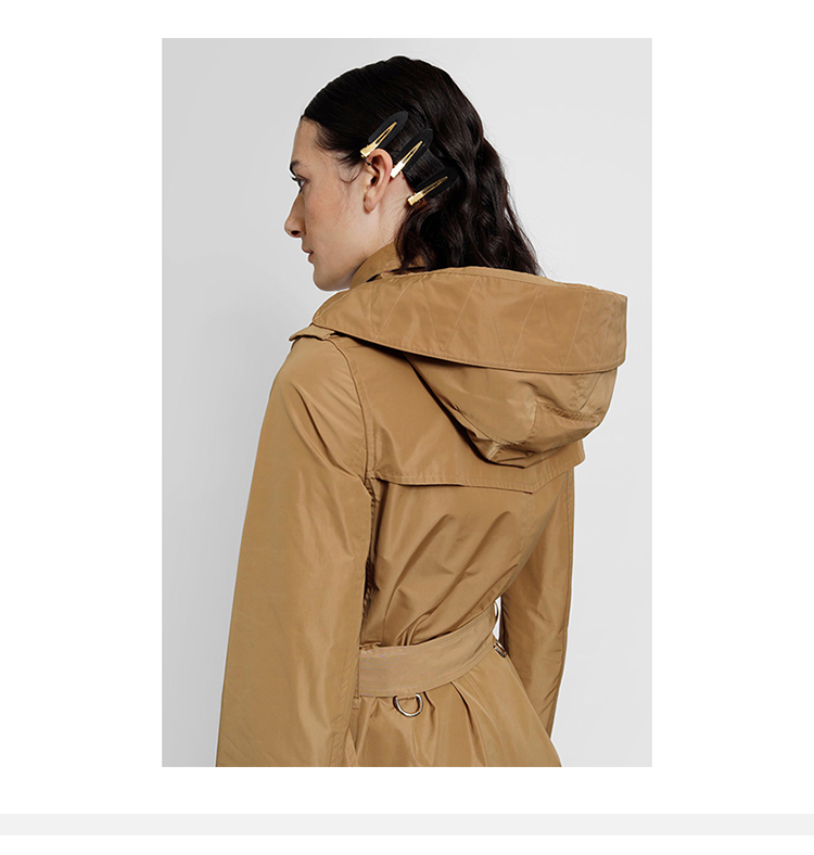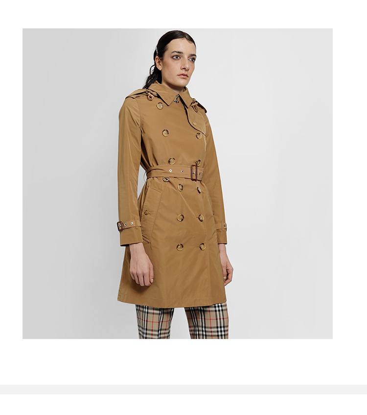 【二】BURBERRY 巴宝莉 女士可拆卸连帽肯辛顿版型塔夫绸 Trench 风衣 卡其色 8033521 A1420