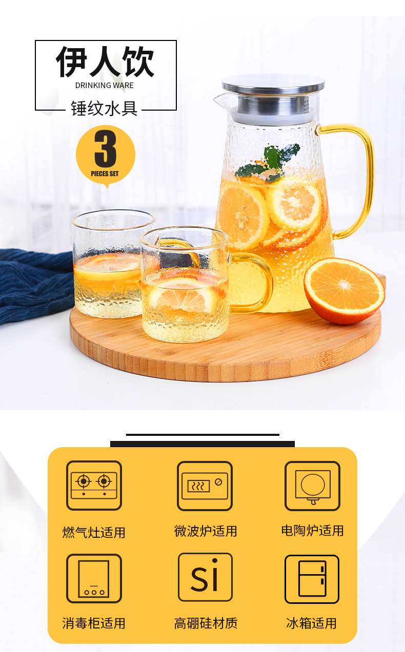 璃说三件套高硼硅玻璃水具套装家用耐高温大容量凉水壶