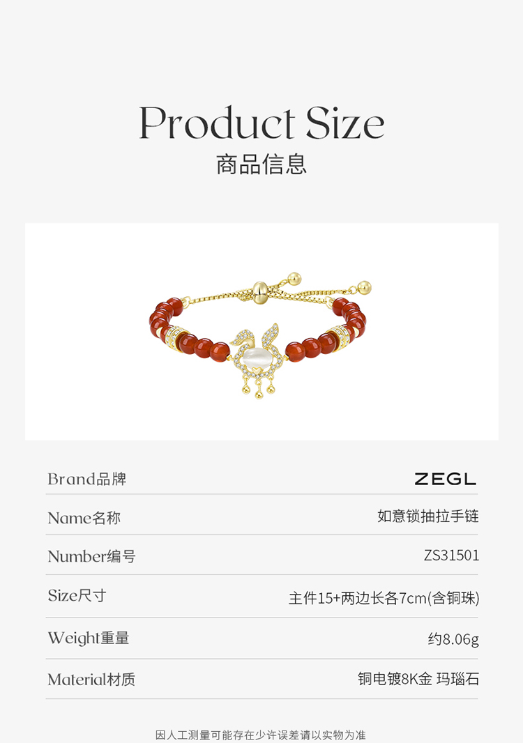 ZEGL设计师本命年系列如意锁兔子手链女生ins小众设计红玛瑙手饰