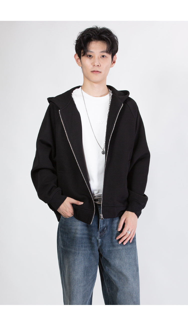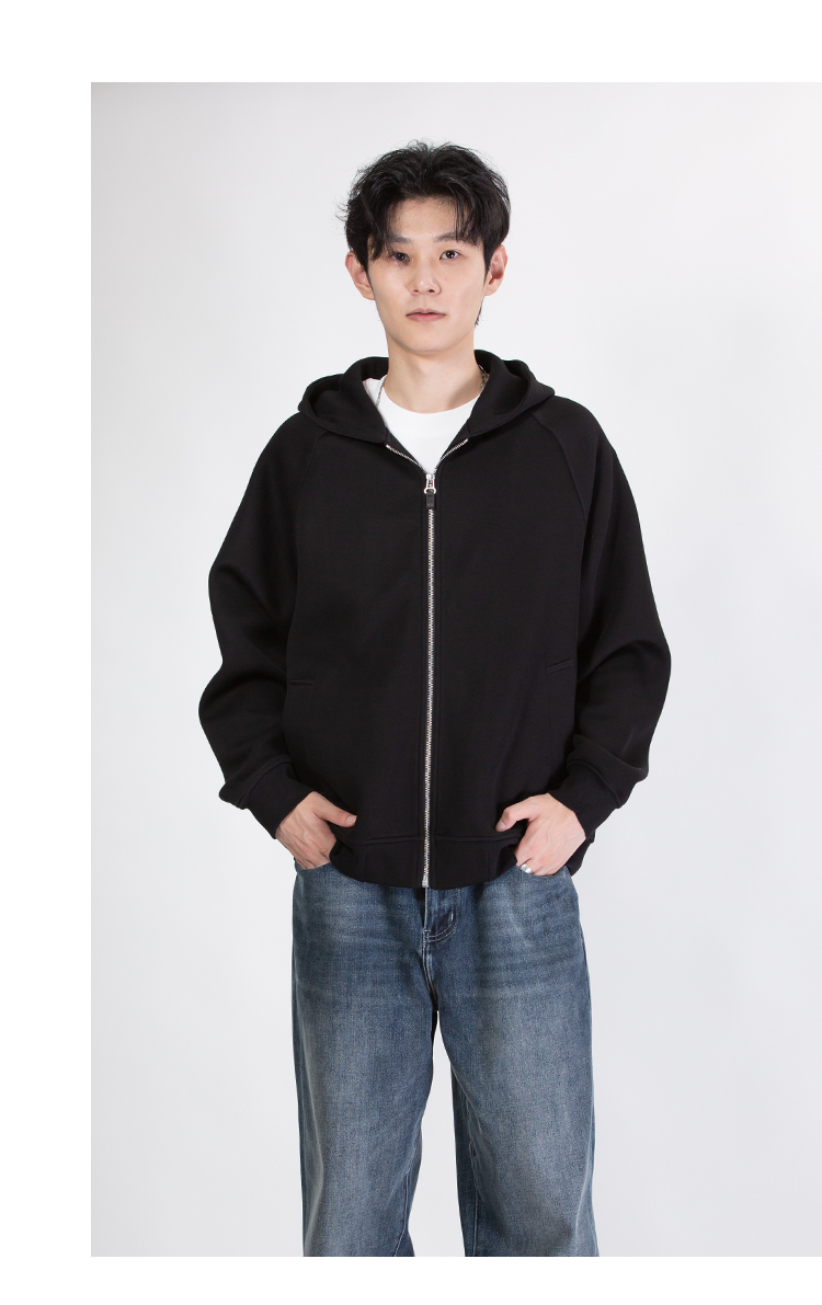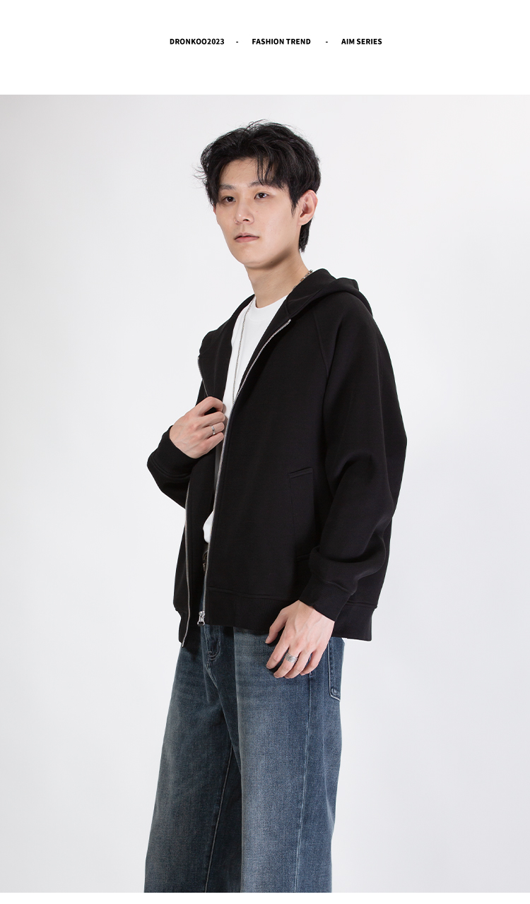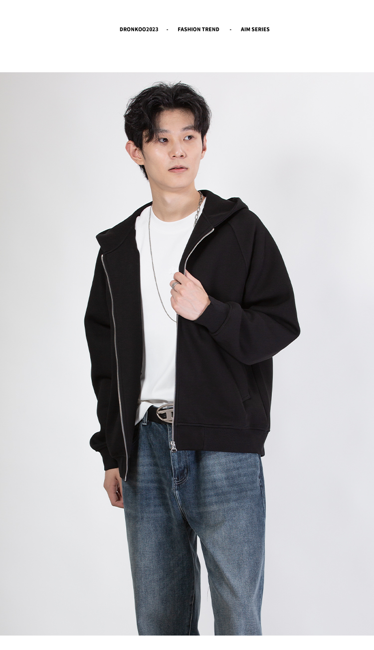 DRONKOO 2025 连帽后幅贴布字母微阔卫衣中厚开衫