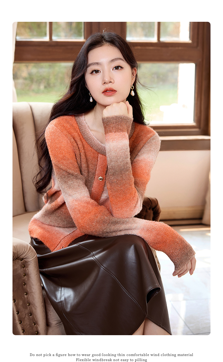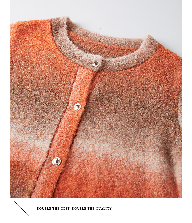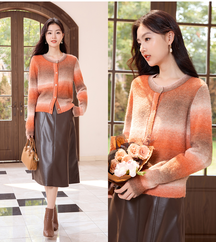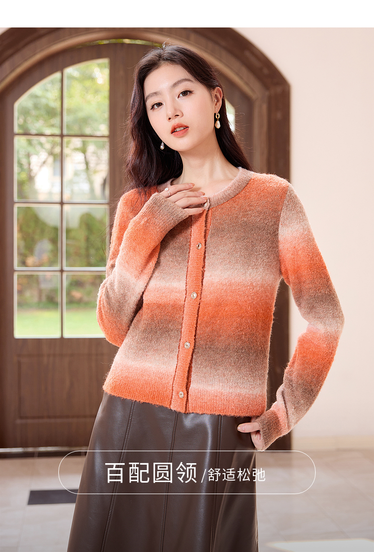 【五折购】熙世界晕染渐变条纹针织外套秋冬2025新款时尚羊毛混纺毛衣开衫