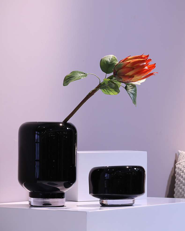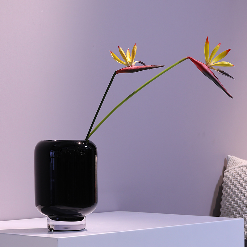 碧轩现代简约黑色直筒玻璃花瓶酒店大堂装饰婚庆圆柱桌面水培花器