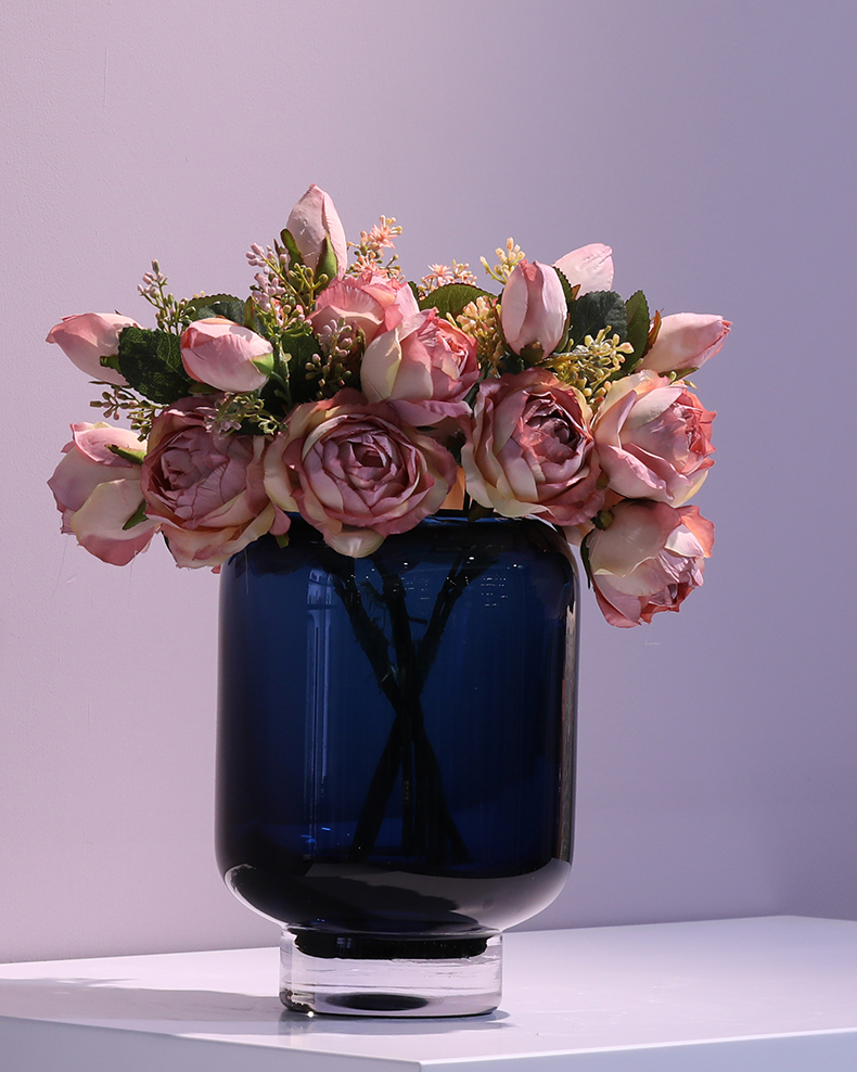 法式中古风芬顿蓝色不规则磁粉花瓶 ins中国风鲜花餐桌电视柜装饰