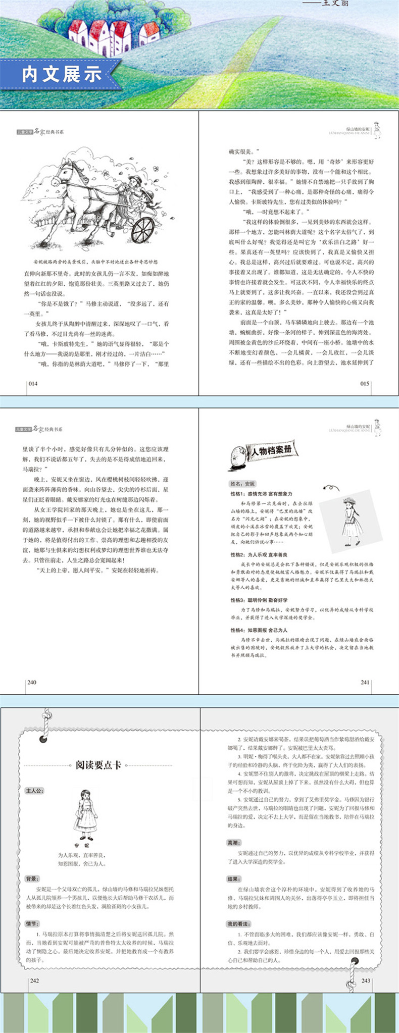 马修和玛瑞拉兄妹俩在绿山墙过着平淡从容的生活。为了给患有心脏病的马修找个帮手,他们打算从孤儿院收养一个男孩,不料阴差阳错,孤儿院送来的竟是一个满头红发、喋喋不休的十一岁女孩安妮。小安妮天真热情,满脑子都是浪漫的想象。在她的想象中,顽皮的小溪在冰雪覆盖下欢笑:如果玫瑰会说话,一定会给我们讲很多有趣的故事;她还把自己的影子和回声想像成两个知心朋友,向她们诉说心事……然而,由于酷爱想象以及“爱美之心”,安妮给自己惹来了一连串的麻烦,安妮和朋友们玩“敢不敢”的游戏,为了自尊心安妮冒险从尖尖的屋脊上走过,结果摔断了脚踝;因为讨厌自己的红头发,从陌生人的手中买了染发剂,结果将头发染成了绿色等等,她不断地闯祸,也不断改正错误。在朋友、家人和老师的关爱中,她从一个红头发、满脸雀斑的“丑小鸭”成长为才貌出众、善解人意的大姑娘。她聪明而勤奋,凭着自己的努力考取了大学,但在马修去世后,为了照顾马瑞娜,她坚决地放......