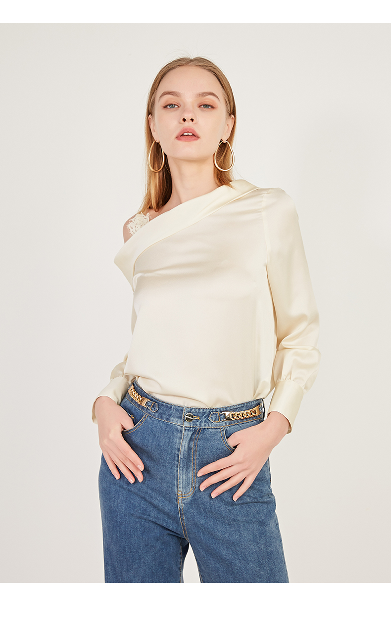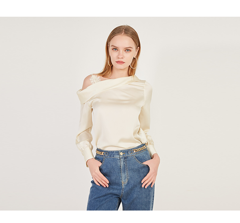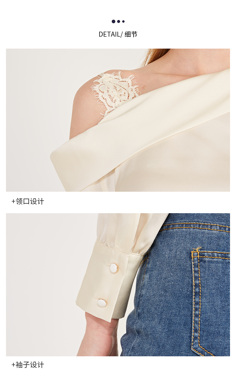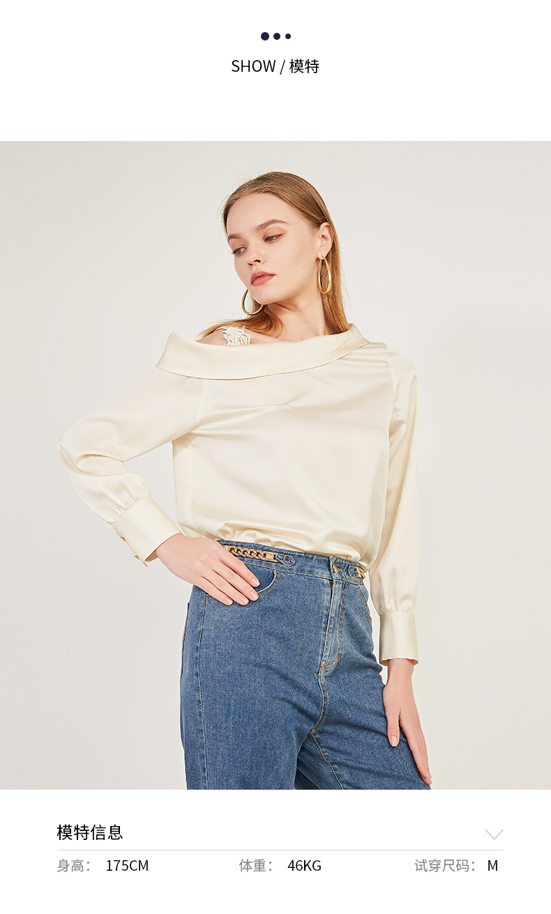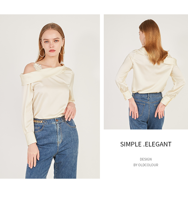 oldcolour春季斜领露肩休闲气质贵气长袖套头衬衫女N12013244