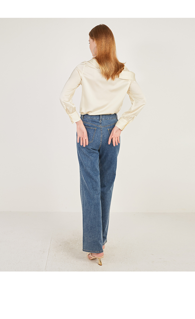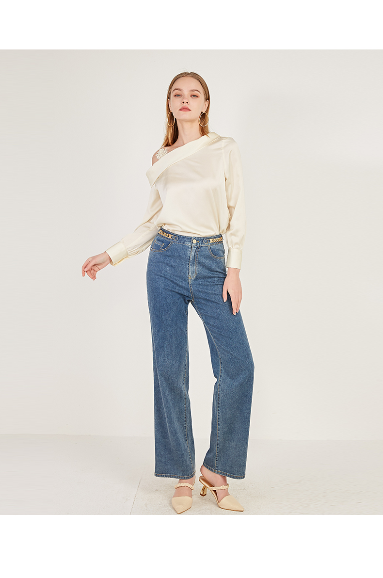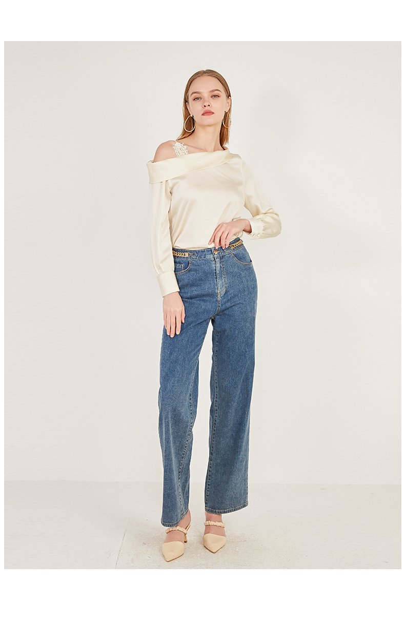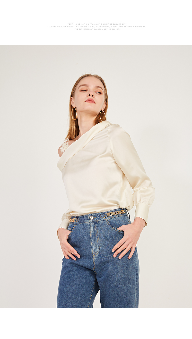 oldcolour春季斜领露肩休闲气质贵气长袖套头衬衫女N12013244