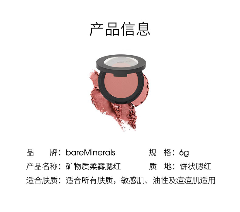 【郑州仓】美国bareMinerals贝茗矿物腮红人间蜜桃(效期至27年2月左右)