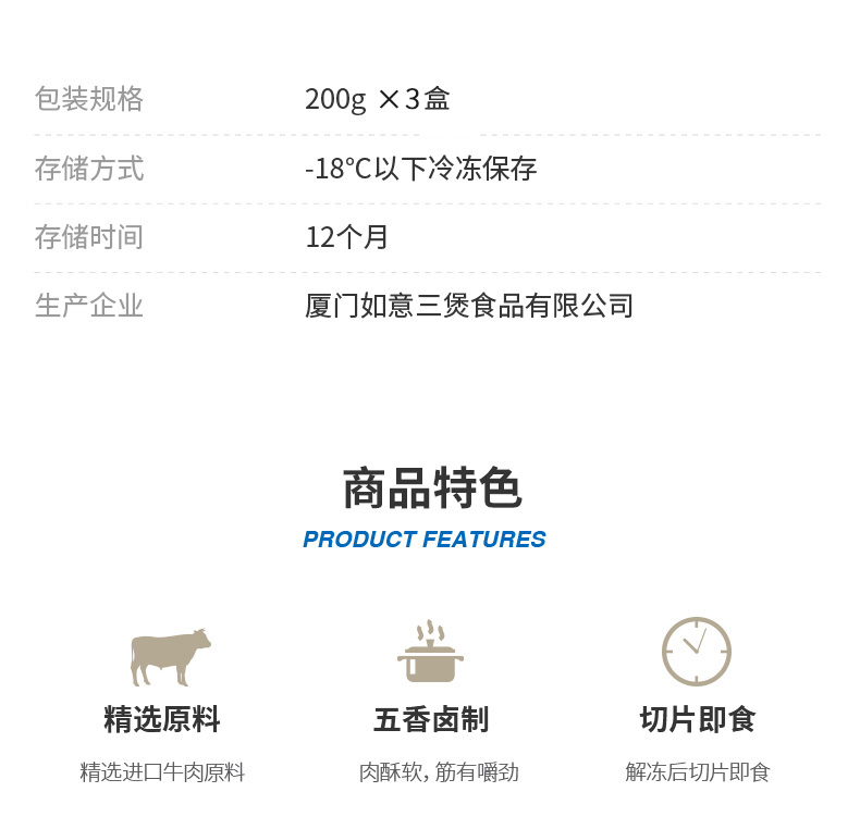 如意三宝 五香卤牛肉 卤肉熟食开袋即食方便下酒菜牛肉凉拌菜 200g*3盒