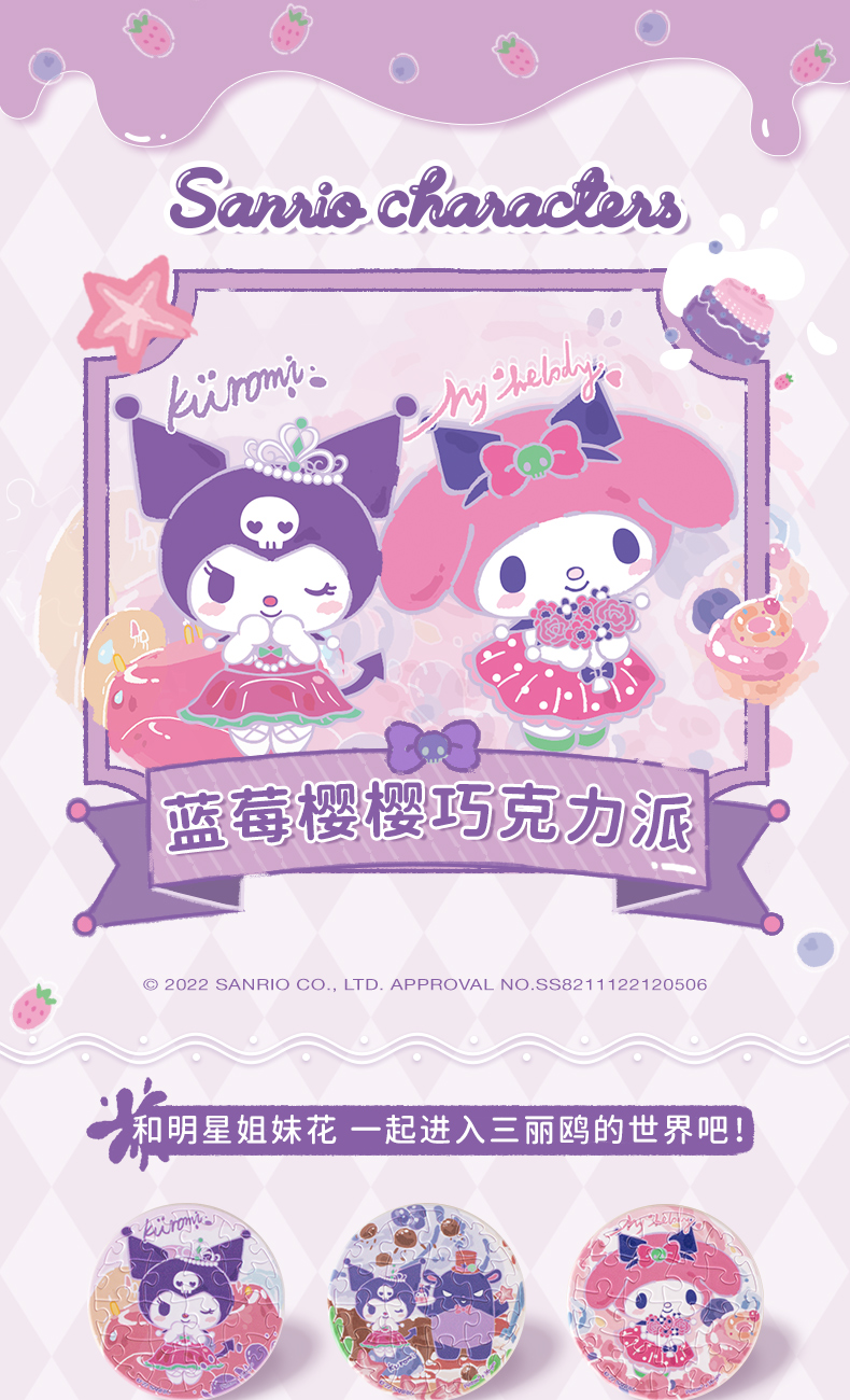 96片徽章拼图塑料拼图 BD1006 Sanrio Characters藍莓櫻櫻巧克力派