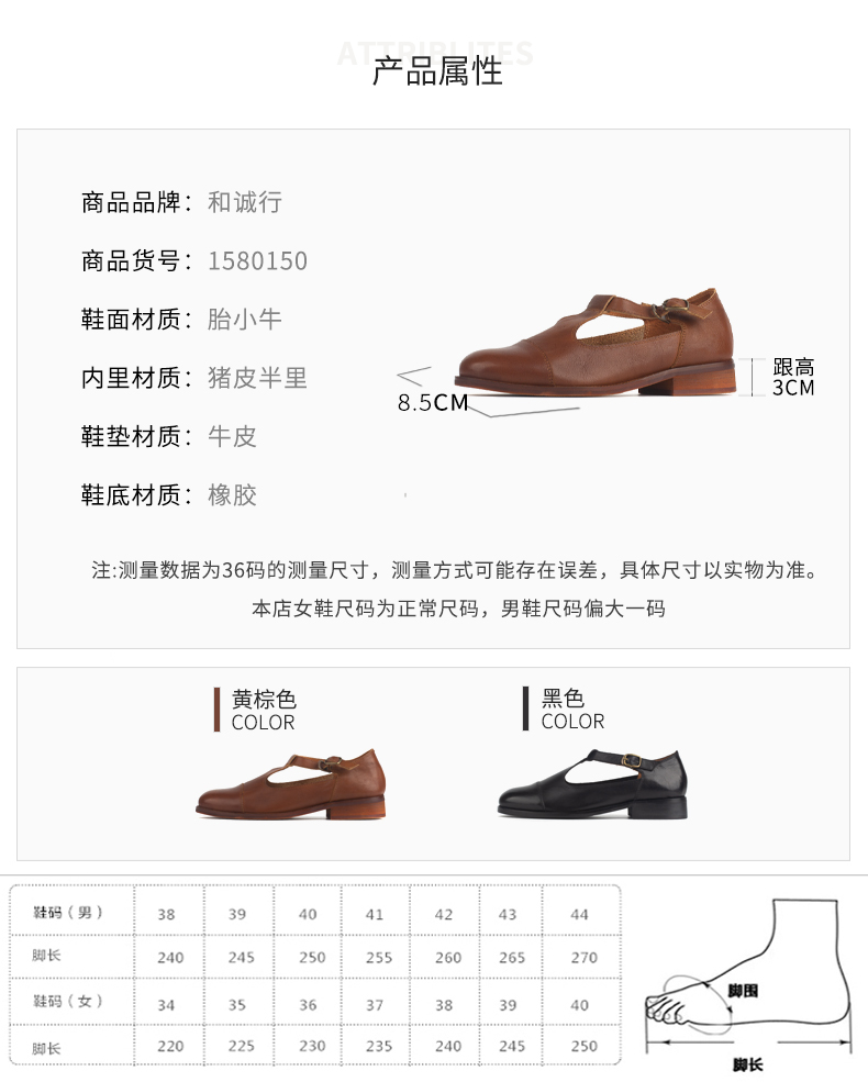 和诚行 2024秋冬新款法式复古玛丽珍女真皮粗跟百搭小皮鞋1580150