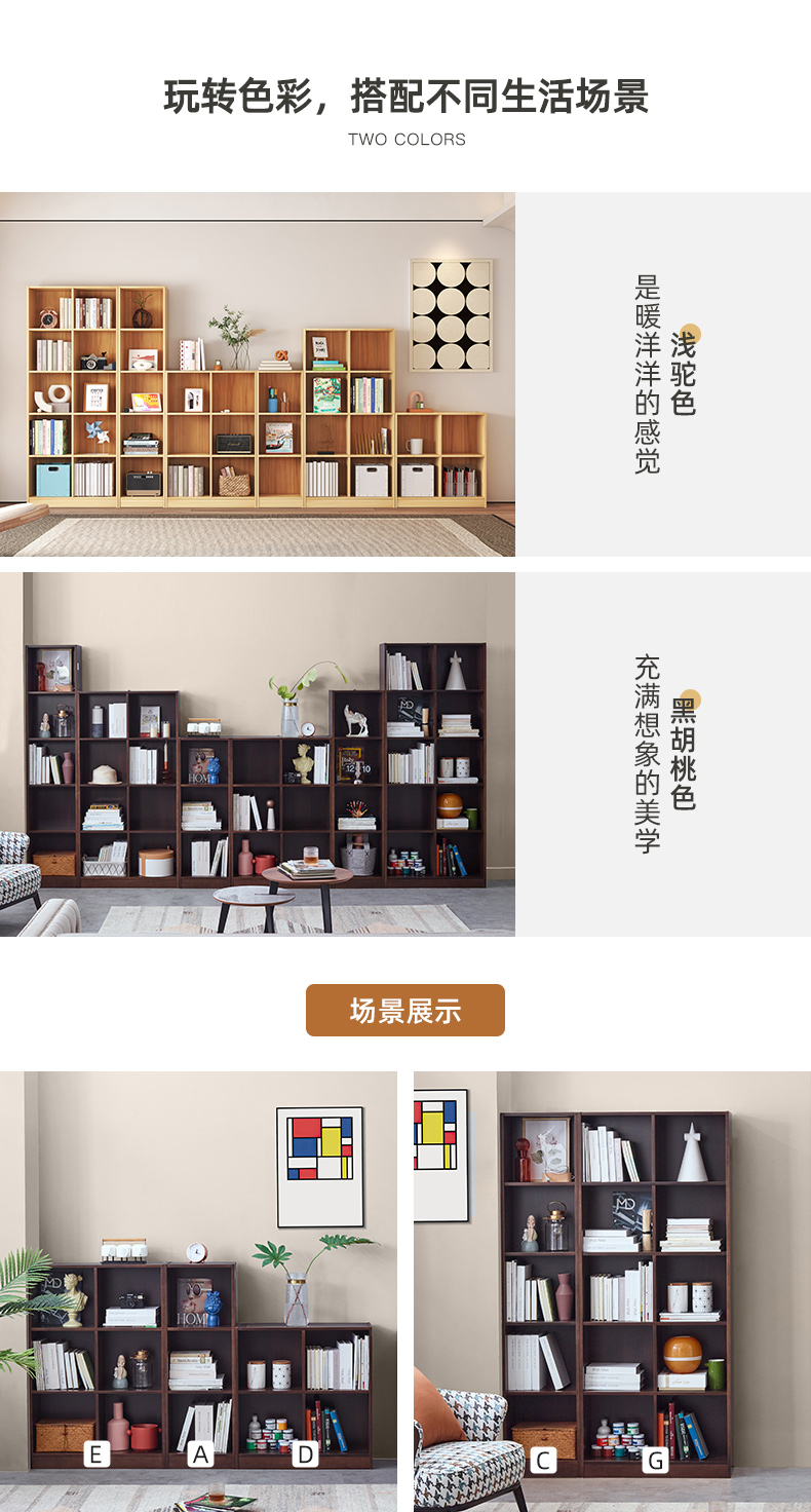 喜梦宝组合书架简约时尚书房架子黑胡桃色书架子