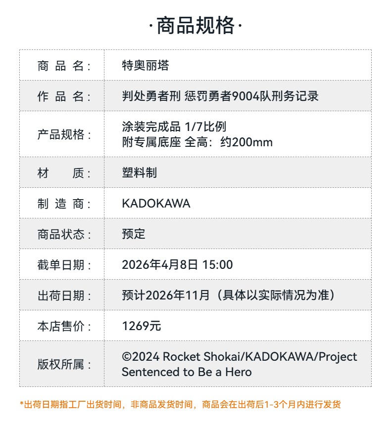 【GSC预售定金】1/7标准比例 特奥丽塔 判处勇者刑͏ 惩罚勇者9004队刑务记录