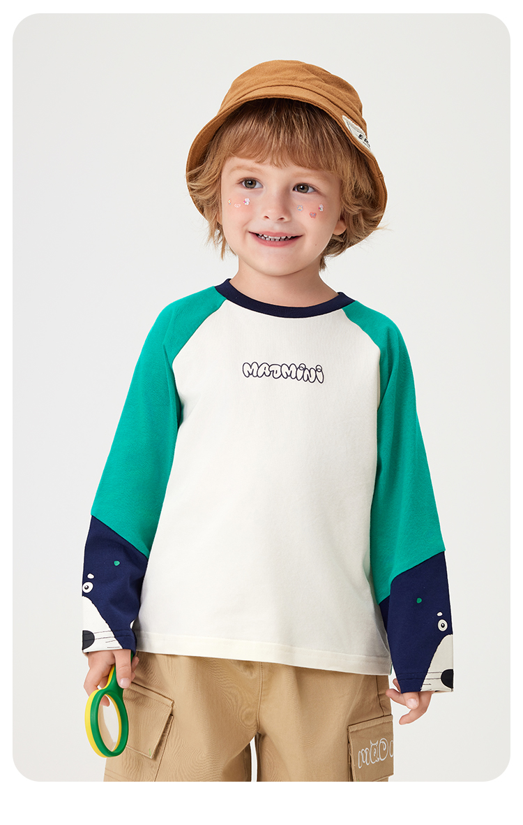 【90-140】【MQDmini】男童春秋长袖T恤中小童抑菌撞色上衣
