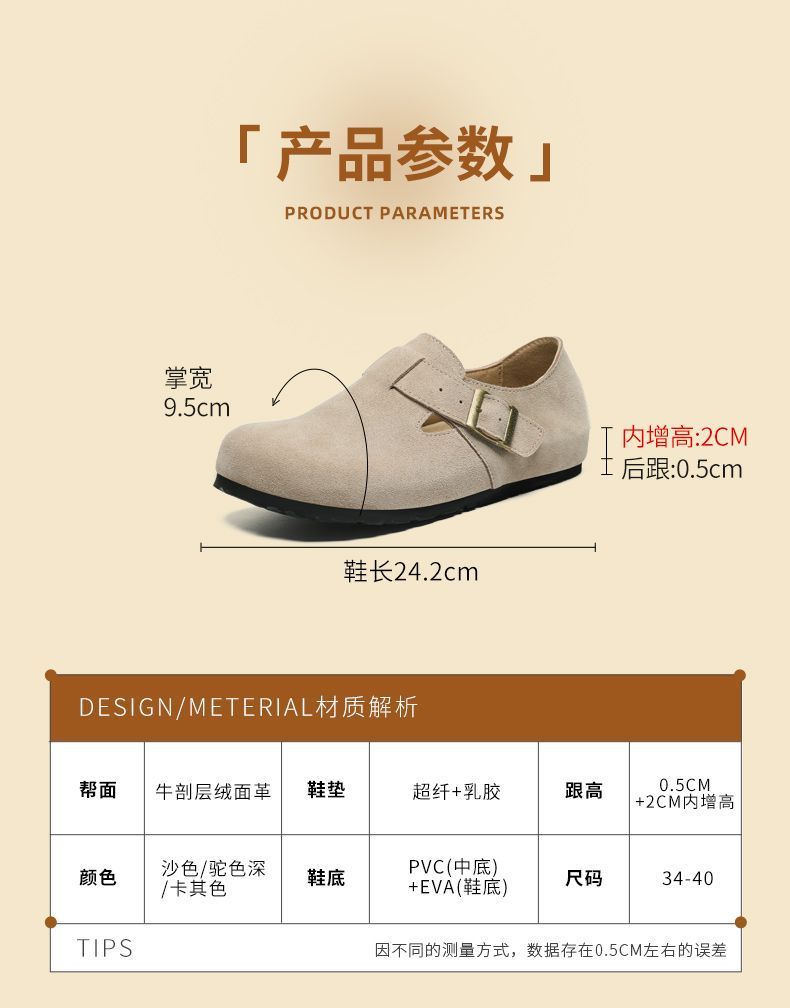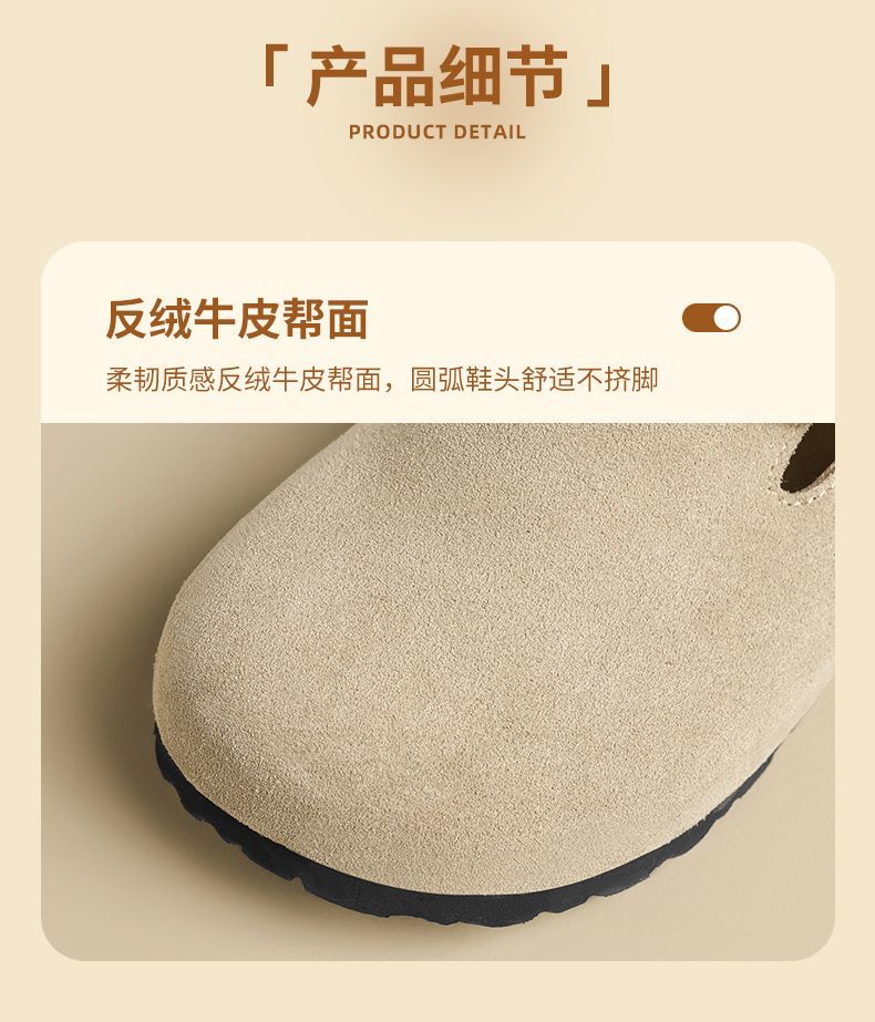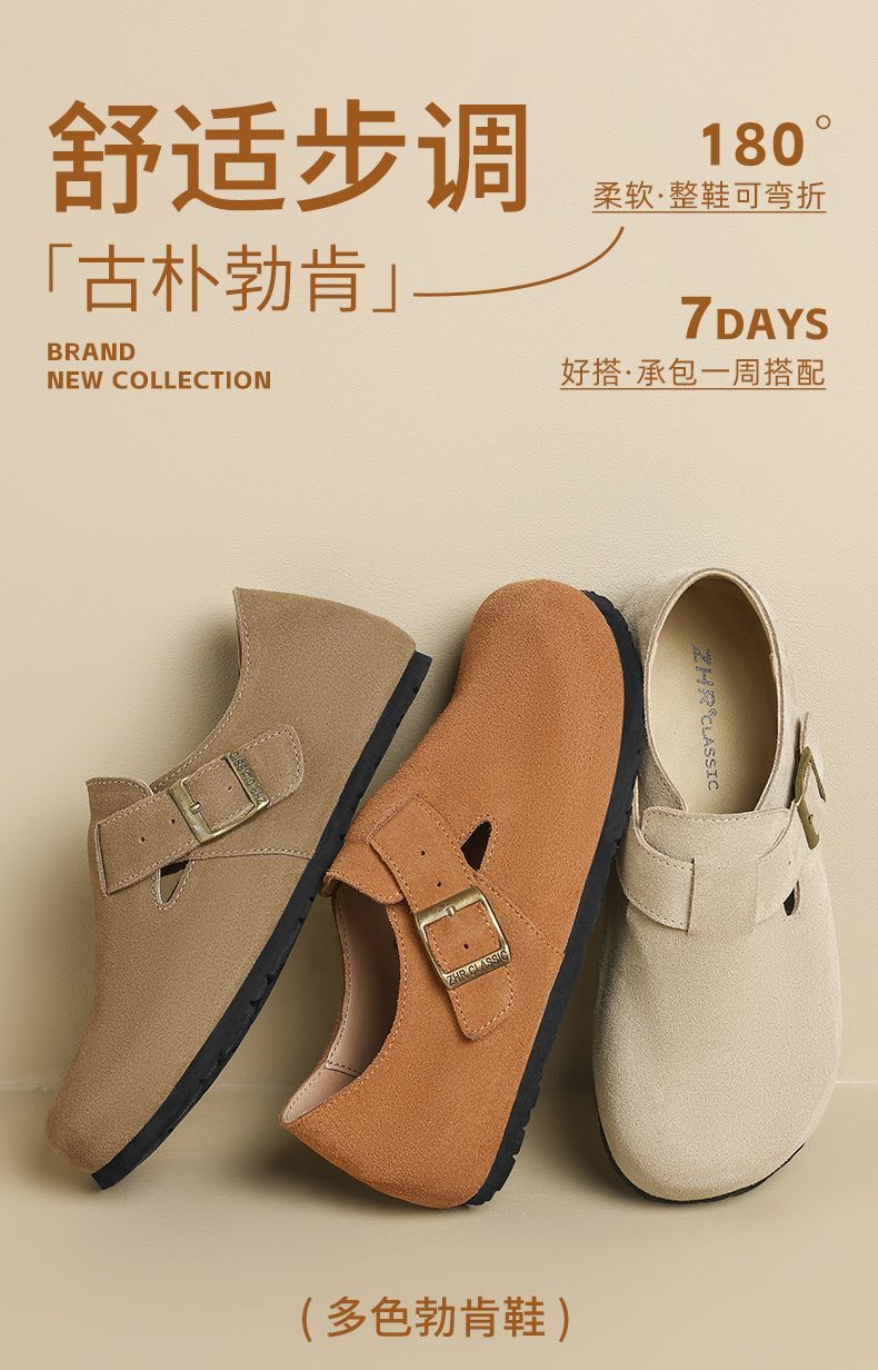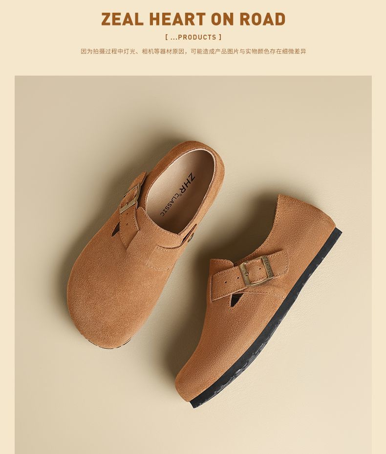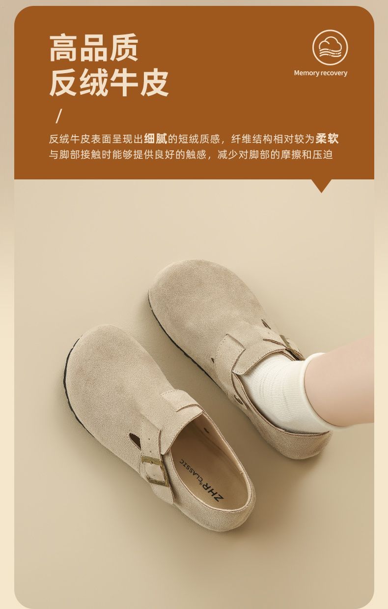 ZHR则则【反绒牛皮】勃肯鞋女百搭一脚蹬懒人鞋女新款复古单鞋女