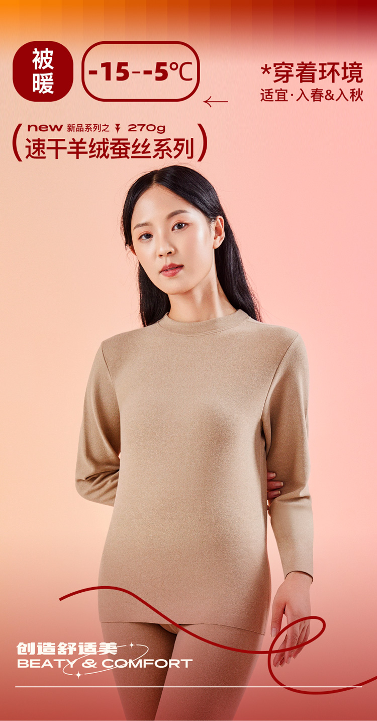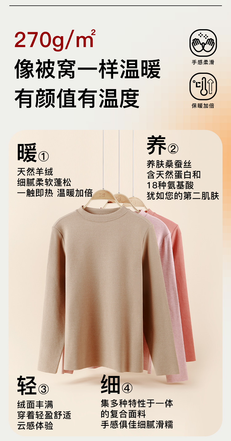 爱帝女式羊绒蚕丝半高领打底衫保暖上衣
