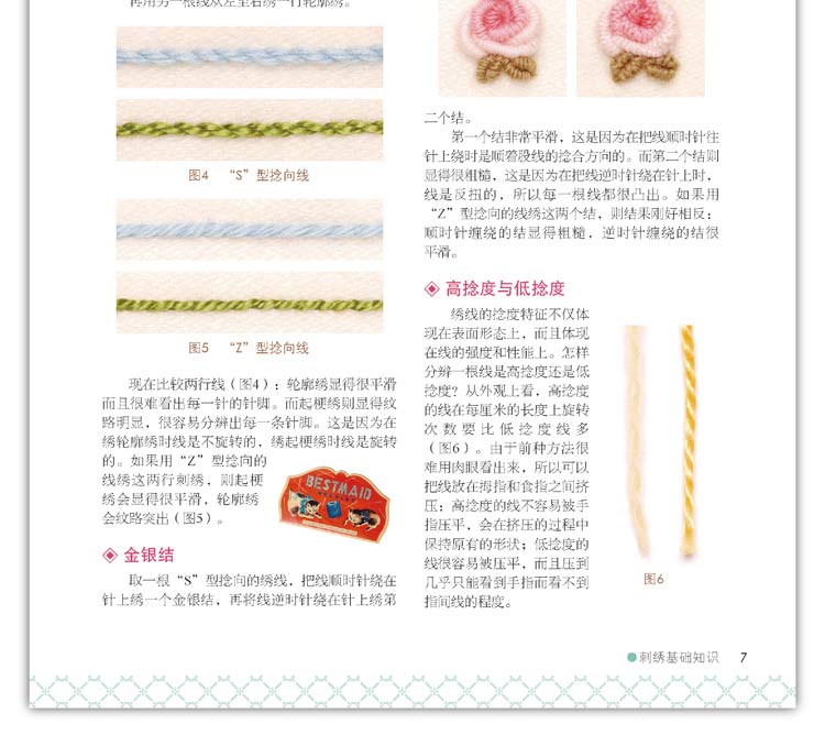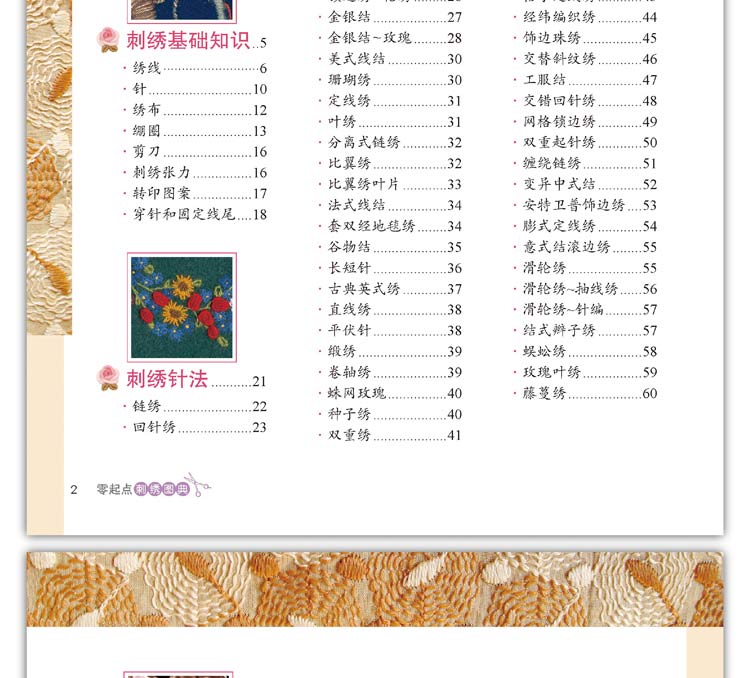刺绣常用针法,如链绣、轮廓绣、缎绣、锁边绣、金银结……