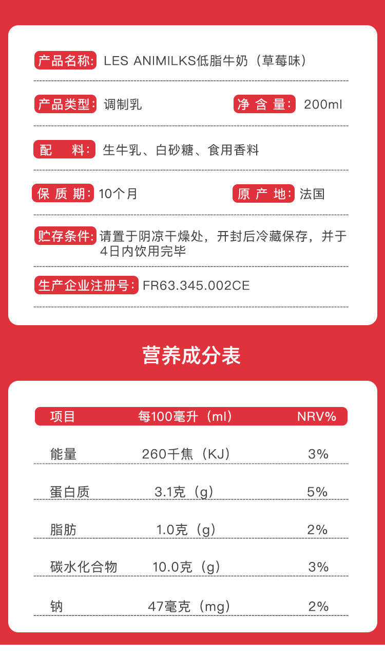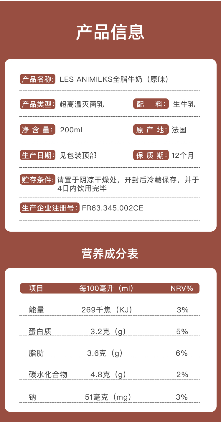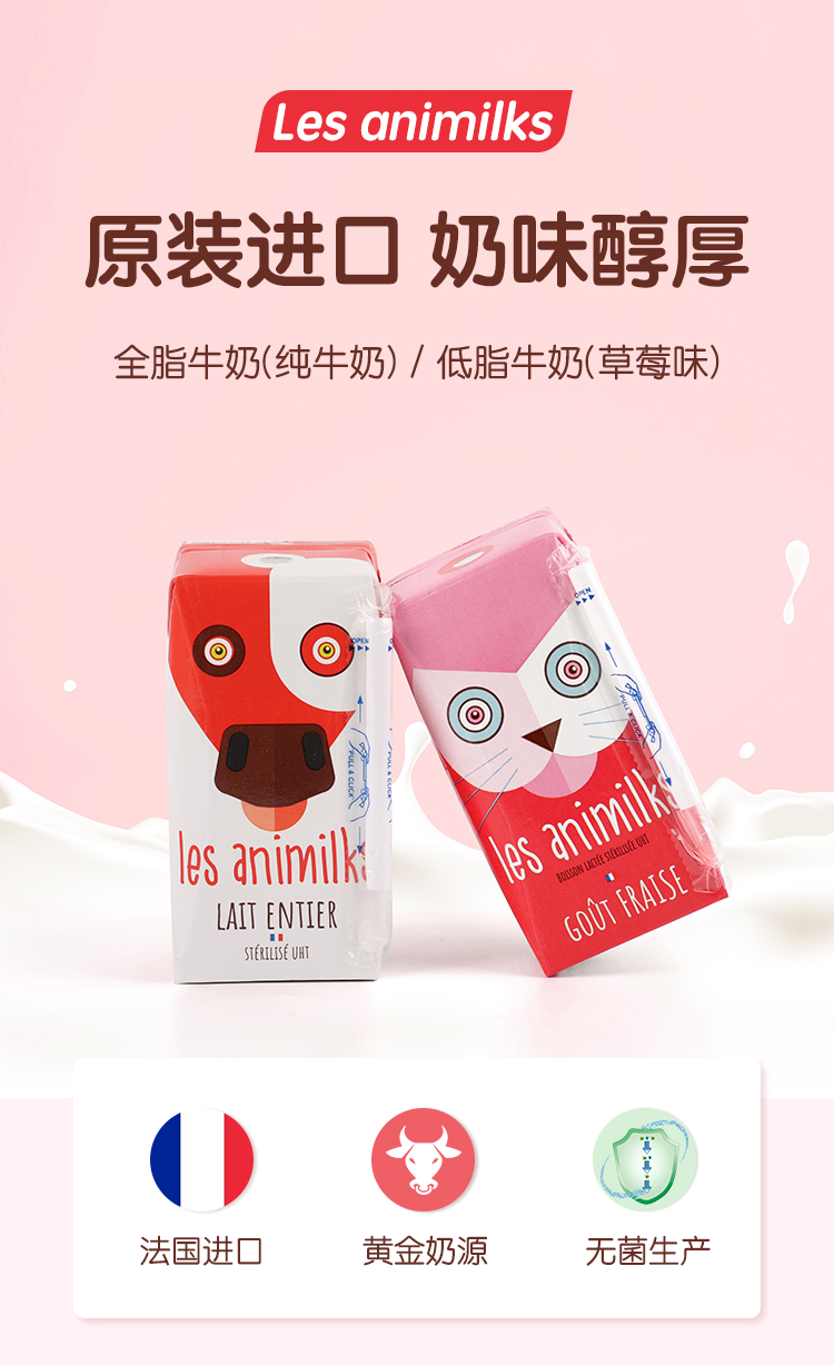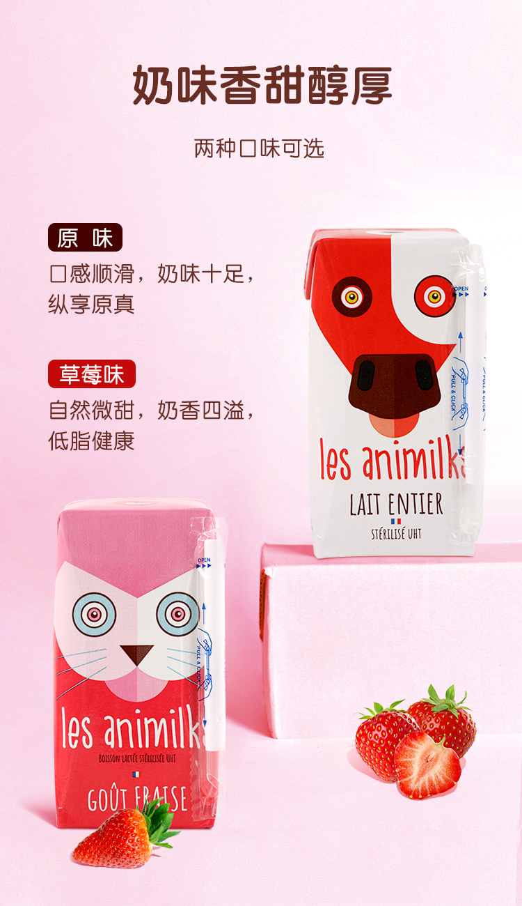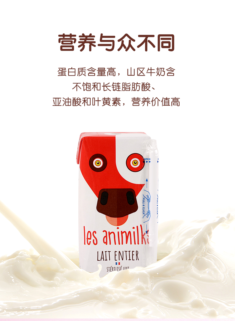法国进口LES ANIMILKS全脂纯牛奶学生儿童早餐奶 【原味】全脂纯牛奶200ml*24瓶